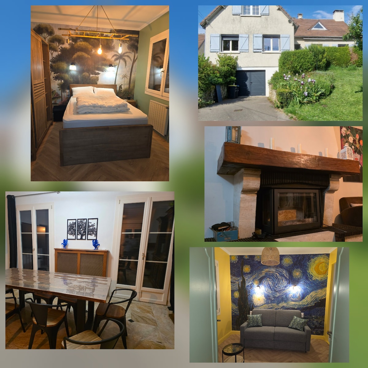 Profitez en couple ou en famille de notre grande maison située en bordure de la forêt. Laissez vous séduire par ces grandes pièces, sa cuisine et sa cheminée pour des soirées près du feu en hiver. Profitez de ces deux terrasses avec salon de jardin l'été. De juin à septembre nous mettons à dispo jacuzzi chaises longues barbecue et hamac. Nous n'autorisons les fêtes, la quiétude du quartier doit être conservé. Nous vous rappelons que la maison fait 100m² et que le jardin 1200m².