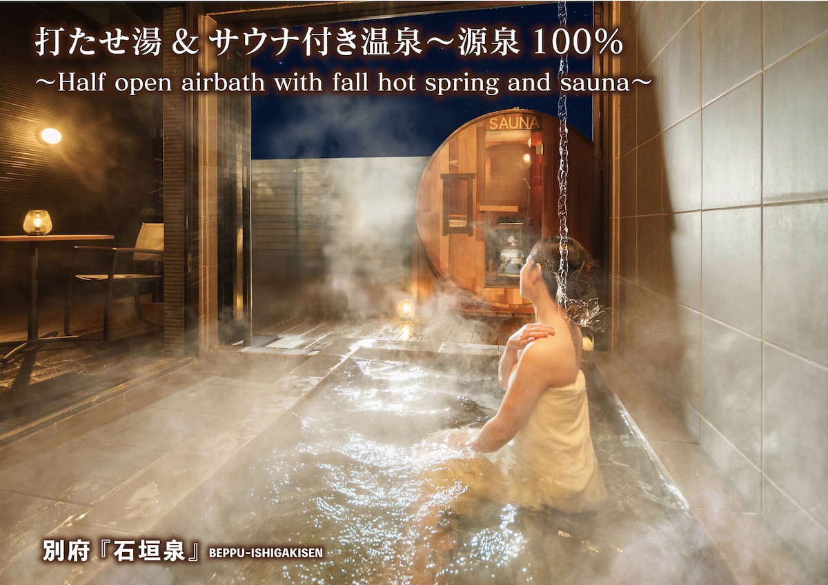 【100%源泉 天然温泉の石風呂付きコテージ】 日本一の湧出量を誇る別府市にある温泉付きコテージです! 別府八湯の一つである観海寺温泉郷一帯にあり、豊富に湧き出る源泉をかけ流しで楽しめる石風呂付き。 付近には新鮮な地元の食材を扱う大きなスーパーマーケット、ドラッグストア、100円ショップなどもあり、便利なロケーションです。 別府市街地から車で10分、高速道路別府インターチェンジからも10分の便利な住宅地に立地していながら、庭の裏手には湯けむりが立ち昇る静かな環境にあり、別府温泉郷の風情も感じていただけます。一軒家貸し切りですので、ホリデー、温泉巡り、ワーケーションなど、気兼ねなくお好きなようにお過ごし下さい。 別府水族館「うみたまご」まで車で20分、アフリカンサファリまで30分、通年営業の屋外温泉プールやボウリングなどが楽しめる杉乃井ホテルリゾートまでは3分と、主要なレジャーにもアクセスが良いです。