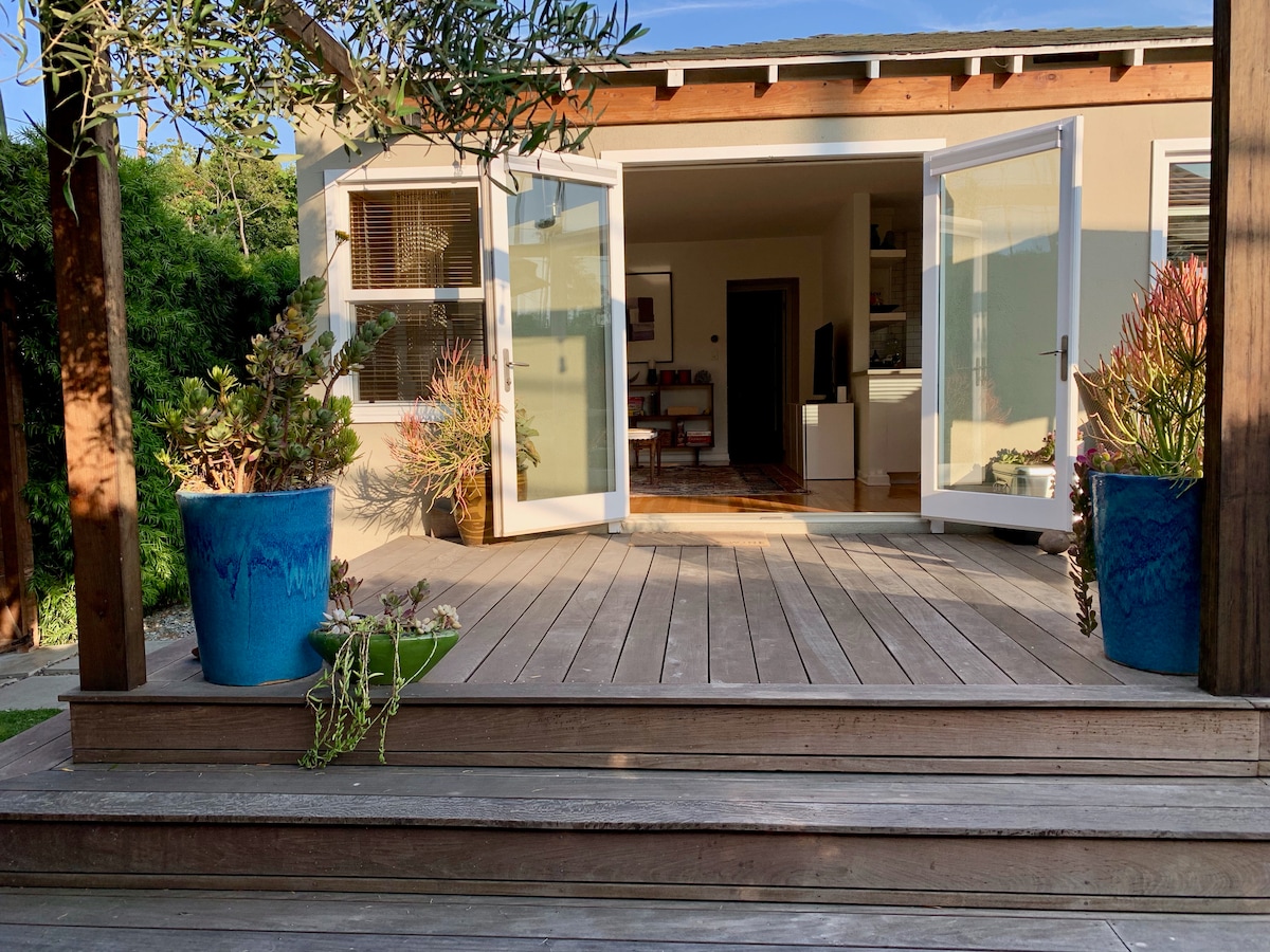 Step through the carriage doors and into an open interior with polished concrete floors, plus a kitchen with navy cabinets and stone countertops. The bedroom comes with barn door, bamboo floors, and 55" HDTV, while a verdant garden awaits outside. Enter the guest house thru carriage doors to a first floor open living space with kitchen, sofa and 60'' HD flatscreen TV. Polished concrete floors and stone countertops. Exit to open, outdoor staircase leading to an upper bedroom with Cal-King Bed, bamboo floors, dresser, 55'' HD TV, comfortable bathroom with walk-in shower and vanity. Wifi / Cable / AC & Heating units in each room. Design is a mix of beach cottage with contemporary accents. 2 Blocks to beautiful Ocean Avenue to watch gorgeous California sunsets or walk to beach. 2 Blocks to Montana Avenue shopping and cafes. Close to Promenade and Metrolink. Unbeatable Location ! Our place is good for couples, solo adventurers, and business travelers. The bungalow is a separate guesthouse but owners are present on the property in the main house. Outside table with a bench and chairs are perfectly located for morning coffee lunch or evening cocktail. We live in the front house so feel free to reach out to us with any questions and/or concerns regarding your stay. Leave the car behind - the beach, restaurants, cafes, and shops, are all an easy walk away. Rent a bike nearby to explore further. Watch the sunset over the water from Ocean Avenue, 2 blocks away, while Metrolink and Promenade are also close. Rent a Hulu Bike for your stay. “On May 12, 2015, the Santa Monica City Council adopted the Home-Sharing Ordinance reiterating its ban on the rental of entire units as vacation rentals. The Home-Sharing Ordinance also legalized the short term rental of a portion of a person’s home when the host lives on-site throughout the visitor’s stay and when the host obtains a business license. Hosts are also required to collect and remit Transient Occupancy Tax (TOT) if not collected and remitted by the hosting platform.” Our license #221557 is listed with the City of Santa Monica