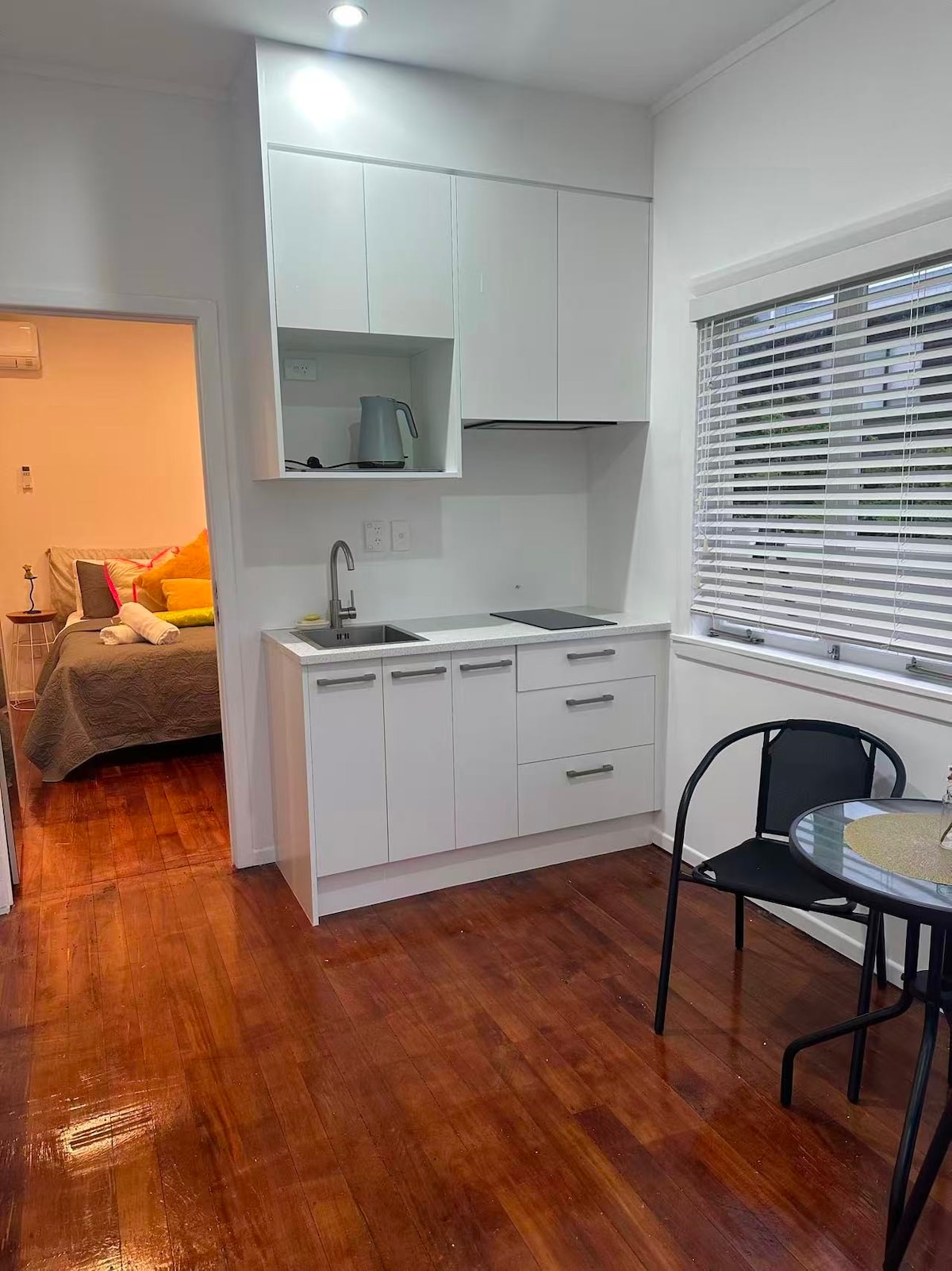 Daxili kilidli qapı ilə əsas evimizdən ayrılan 2 böyük yataq otağı və böyük vanna otağımız var. Oklendin sevimli daxili şəhər ətrafı. Çimərliklər,Mission Bay 20mins gəzmək,Kelly Tarltons 10mins. Otaqlarda A/C,TV, Wifi, Yeraltı İstilik, Masa, Settee, Jug, Toaster,Nespresso qəhvə maşını,Qızdırılmış dəsmal məhəccəri .Full ölçülü dərin vanna və ayrıca duş. Günorta günəş şkafı olan həyət. Kloda kilid qutusu olan giriş imkanı var.