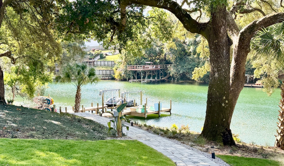 Villa with waterfront views! Wake up to stunning views of the bayou from every room in the house! Bring your own boat and launch on-site (plenty of trailer parking available), fish off the dock with a cleaning station , or watch dolphins play as you sip your morning coffee on the back porch. Located near tennis/pickleball courts, golf course, and just a short drive to the beach or boat ride to Crab Island …adventure and relaxation await!