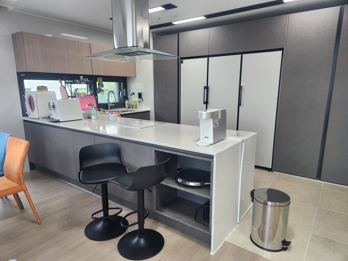 Maksimum 5 nəfər üçün mövcuddur Yenidən qurulmuş, işıqlı və səliqəli (Ayrı girişi olan 32 kvadrat futlu mənzil) İkinci mərtəbəli (eksklüziv) evə sərbəst giriş mümkündür və girişin yanında bir avtomobil park etmək olar. Elektrikli avtomobil şarj cihazı da var, odur ki, onu gecə vaxtı doldura bilərsiniz ^ ^ - Wi-Fi, NETFLIX mövcuddur. Fotolarda çəkilməsi mümkün olmayan geniş bir məkandır. Ailə, sevgililər və dostlarımızı kiçik bir səfərdə qarşılayırıq. (Hanok Kəndi, Jeondonq Kafedralı, Punqnammun, Nambu Bazarı, Qaeksa, Jeonju Stansiyası və Terminal) avtomobillə 10 dəqiqəlik məsafədədir və [Deokjin Parkı və Jeonbuk Milli Universiteti] yaxınlıqda yerləşir və böyük ərzaq mağazasına keçmək rahatdır. Səhər və axşam qaçmaq və gəzmək üçün münasibdir (Ajungho Deck Road) də qonaqlama yerinin yaxınlığında yerləşir. Sürücü kursu kimi tövsiyə etdiyim İksan, Gunsan və Cinan Metasquoia Yolu ilə avtomobillə 40 dəqiqə ərzində əlaqə saxlamaq olar. 😄 Əlbəttə, evin ətrafında (Ərzaq mağazaları, rahat mağazalar, Deyso, apteklər, xəstəxanalar və camaşırxanalar var), odur ki, istifadəsi rahatdır.