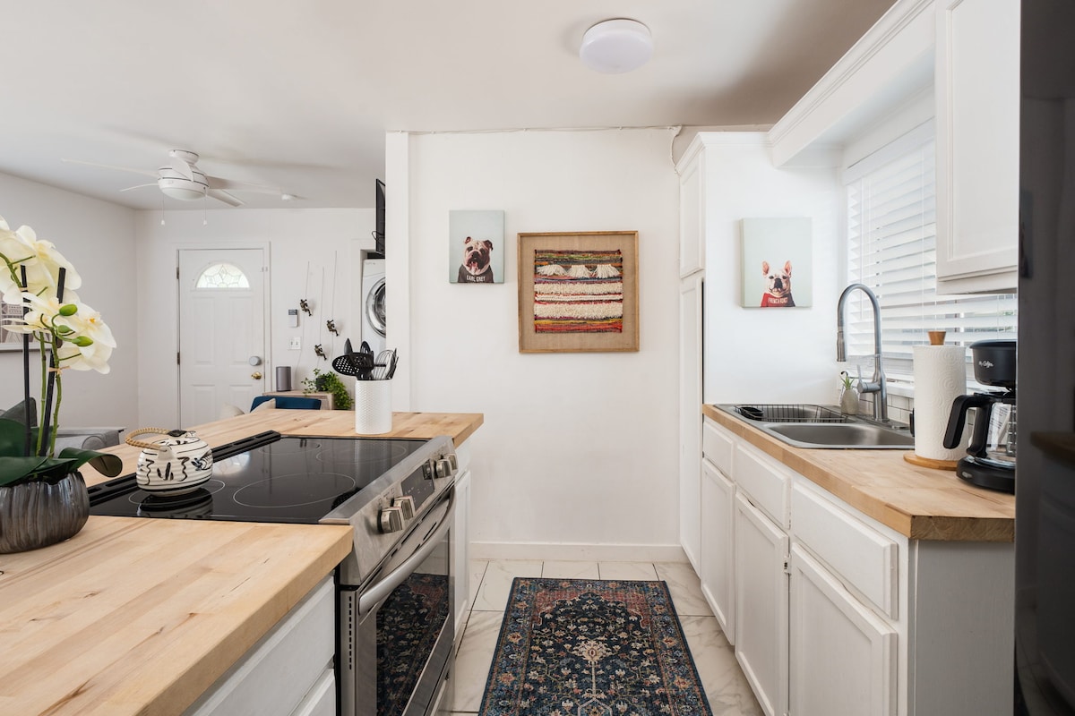 Çıxmaq istəməyəcəyiniz rahat, sakit ab-havanı təmin etmək üçün təbii teksturalar, torpaq tonları və əla təbii işıqla dizayn edilib. Dbl master suite w/ 2 queen bds və 2 anadangəlmə ayrıca hamam bunu 2 cütlük, ailələr, peşəkarlar və ya OKC-nin mərkəzində qalmaq və hələ də yerli təcrübə əldə etmək istəyən hər kəs üçün mükəmməl edir. PLAZA OKC-nin ən yaxşı incəsənət rayonlarıdır və dadlı yeməklər, dünya səviyyəli küçə incəsənəti, qəhvə, yerli mağazalar, festivallar, canlı musiqi və daha çoxuna yalnız 3 bloklu gəzinti. Şəhərin mərkəzində OKC 5 dəqiqəlik məsafədədir.