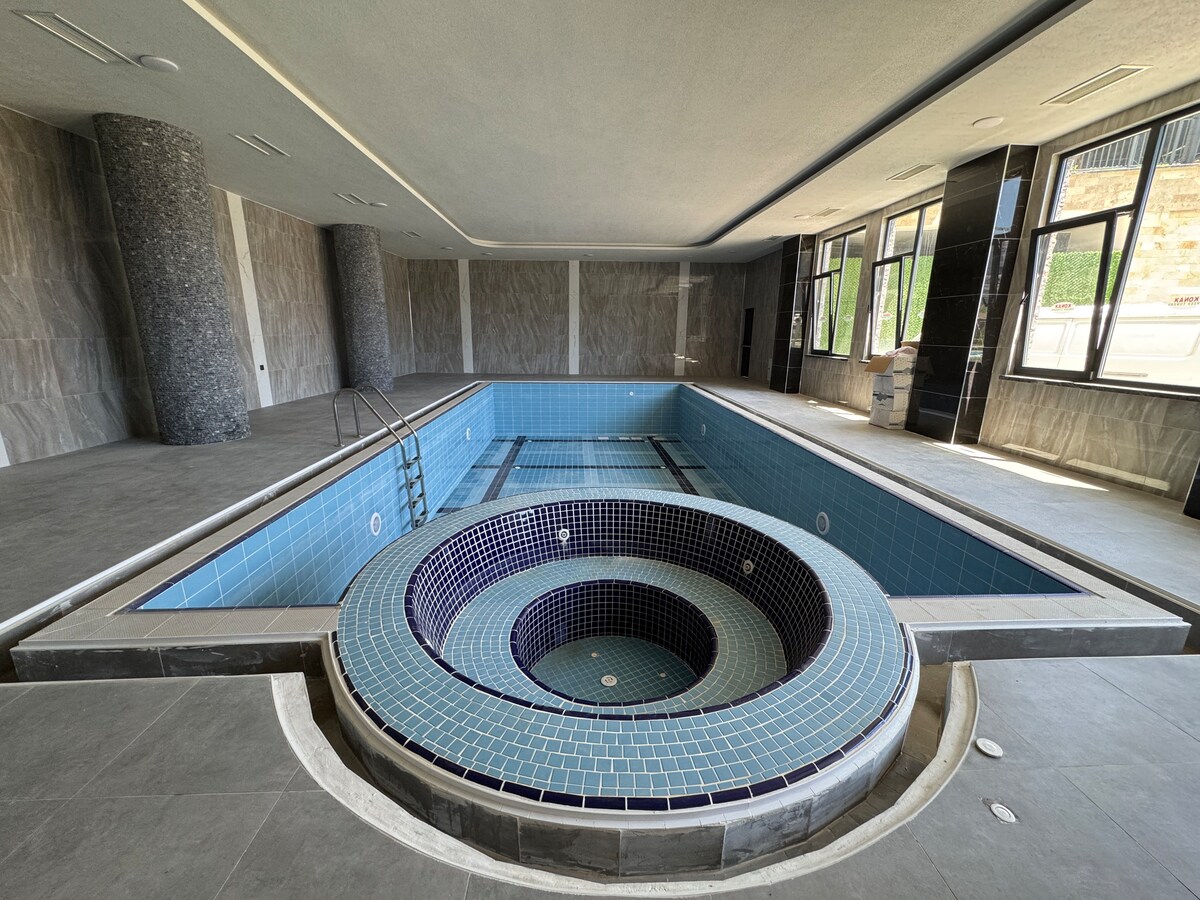 Məkanımız Manavqat mərkəzindən 5 km, qədim Yan şəhərindən isə 12 km məsafədədir. Dənizə 15 dəq. məsafədə. Şəhərin izdihamından və səs-küyündən uzaqda, şam ağacları altında ayrıca evimizin bağında ayrıca hovuz var. Hovuz yalnız qonaqlarımızın istifadəsi üçün mövcuddur. Evimizin öz ayrıca bağı var. Bağımızda limon və zeytun ağacları var. Yaşıllıqlarda bağımızdakı barbekü və hovuzdan zövq ala bilərsiniz. İstəsəniz, salonumuzdakı ağıllı televizordan serial/film izləyə bilərsiniz.