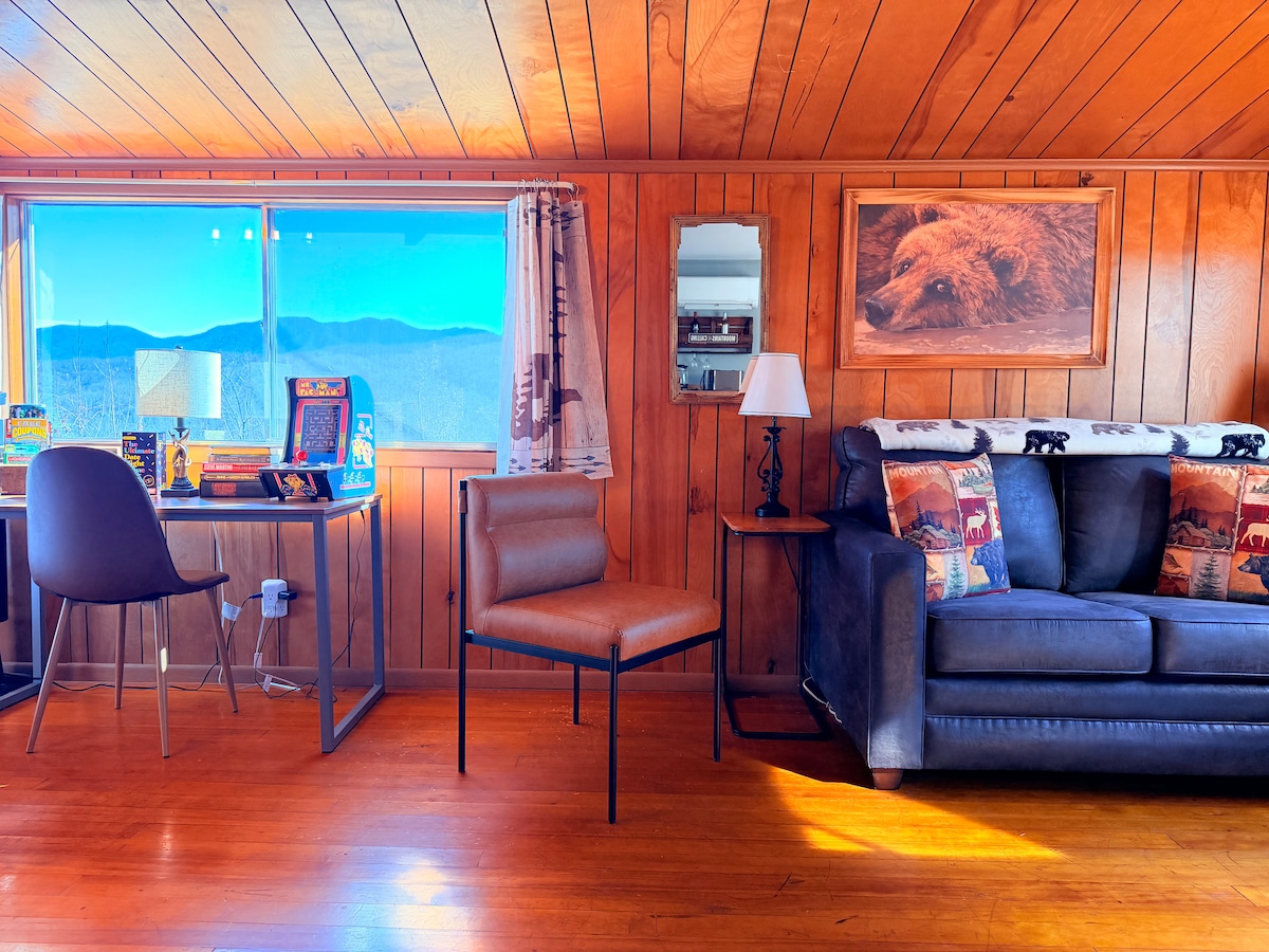 Dağlara qaçın və Böyük Dumanlı Dağların inanılmaz, maneəsiz mənzərələrini yaşayın! Nəfəskəsici mənzərədə islanmaq üçün nəzərdə tutulmuş bir neçə səviyyəli göyərtədə dincəlin və ya oyun otağında, teatr otağında və ya ayrıca cakuzidə keyfiyyətli vaxtdan zövq alın. Əsas yataq otağı heyrətamiz mənzərəli geniş pəncərələr təklif edir və bu, son dağ istirahət yerinizdir. Tətilinizi planlaşdırmağı gözləməyin. Bu xəyalpərəst dağ gəzintisində qonaqlamanızı təmin etmək üçün hər hansı sualınız olarsa, mənə mesaj yazın və ya indi bron edin.