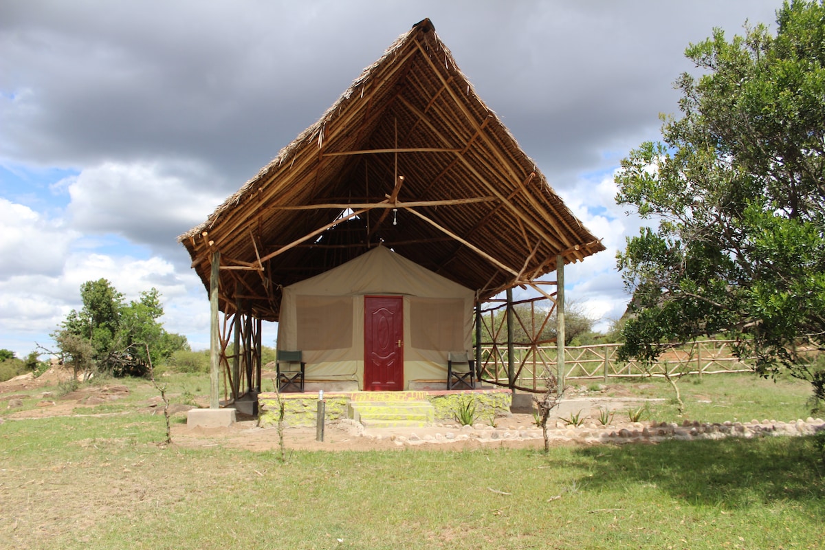 Masai Maradan zövq aldığınız zaman qonaqlamaq üçün sakit düşərgə. Həyat yoldaşım və mən Masayam və bu düşərgəni idarə edirik. Bu, 2022-ci ildə tikilmiş yeni düşərgədir. Qonaqlarımız üçün 4 pulsuz ayaqüstü bina/çadır var. Hər birində 3 150-179 sm-lik çarpayısı olan xüsusi kilidli giriş qapısı, tualeti olan ayrıca hamam otağı, çanaq və isti duş var. Bütün yeməklərinizi yeyəcəyiniz ümumi binamız var. Ayrıca otağınızın önündə gözəl bir göyərtə var. Qiymətə yataq və səhər yeməyi daxildir. Hava limanından götürmə mövcuddur