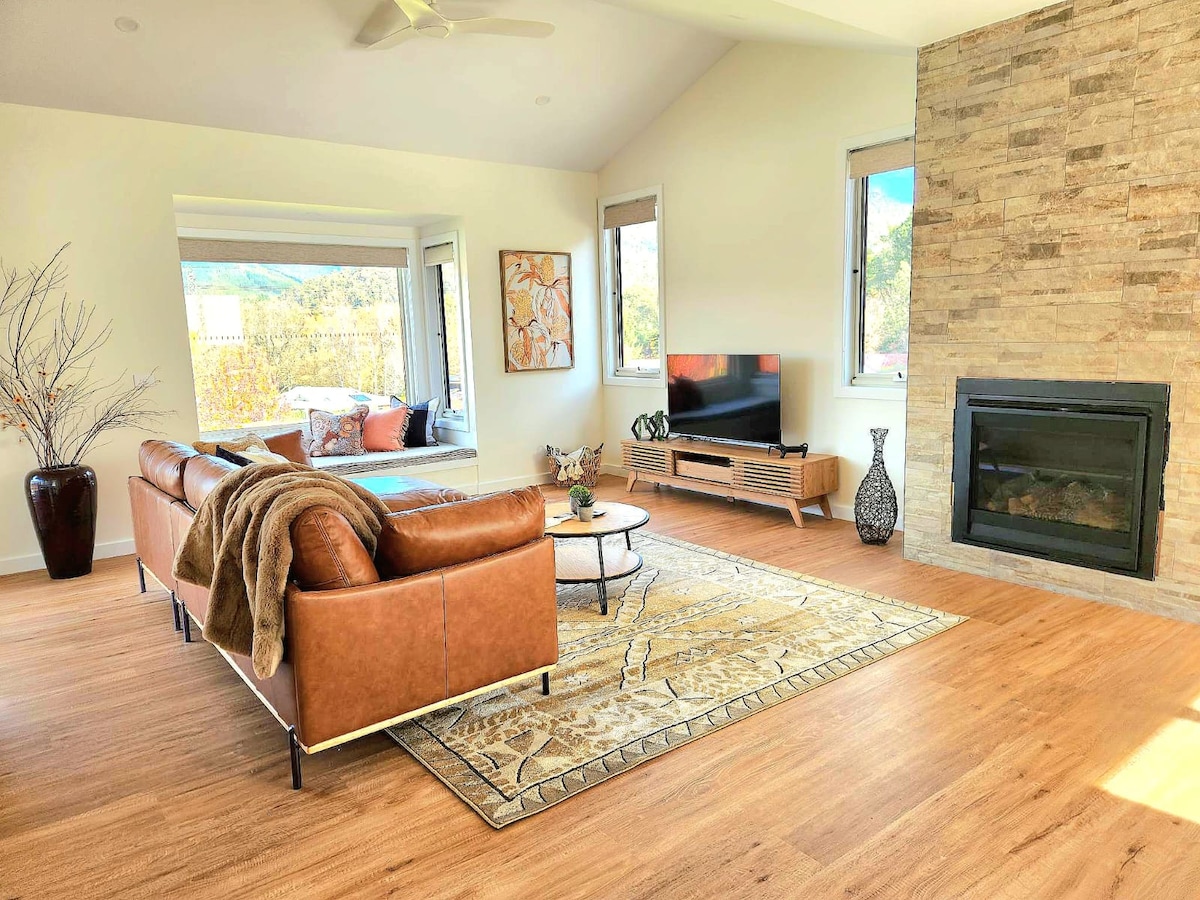 Mərkəzdə yerləşən bu evdə şəhərə cəmi 600 m məsafədə yerləşən dəbli təcrübədən zövq alın. Siz göyərtədə və ya içəridəki istidən dincələrkən Mistik Dağ, Apex və Feathertopun qar kənarlarında ən yaxşı mənzərələrdən bəzilərini seyr edəcəksiniz. Möhtəşəm mənzərələr üçün tikilmiş yeni evimizdən zövq alın. Çayın şimal tərəfində şəhərin daha sakit tərəfində yerləşir. Bu, mövcud deyilsə və ya hər ikisini bron edirsə, elanlarımızdakı bacı evinə nəzər saldığınıza əmin olun.