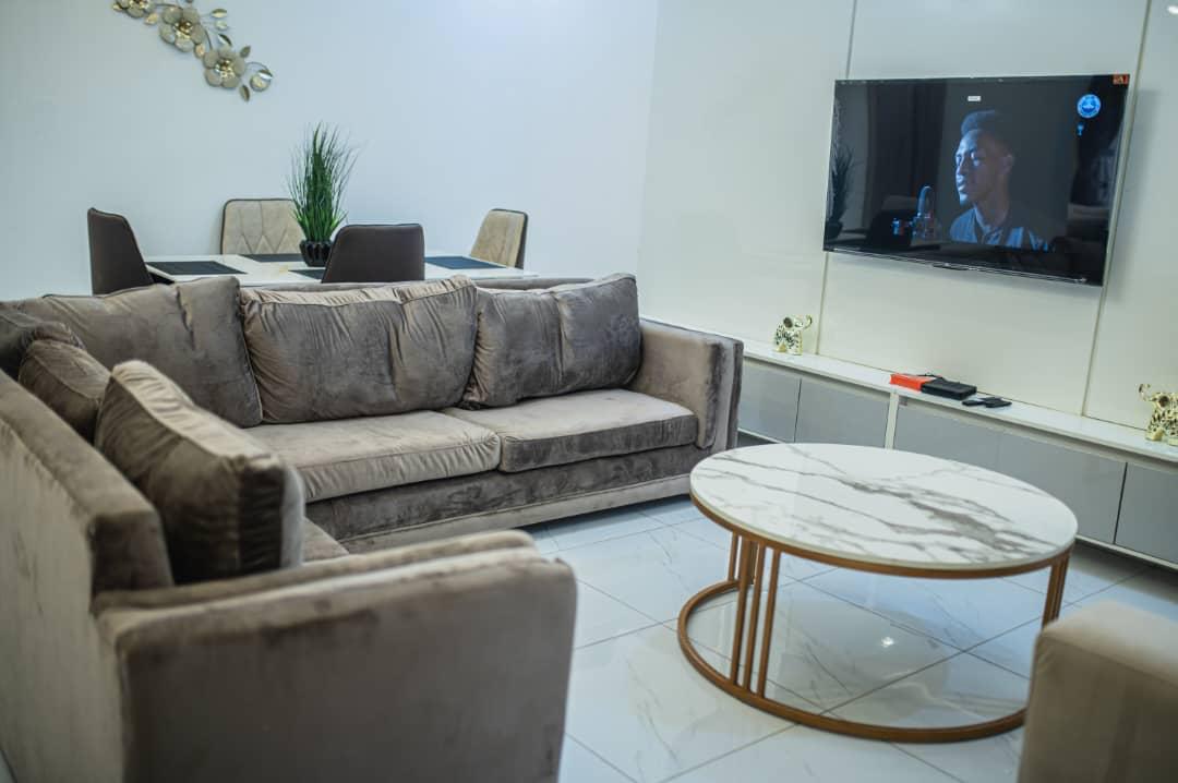 Hava limanından əsas binaya və həmçinin alaqbakadan əsas binaya qədər olan əsas binaya qədər çox da uzaqda olmayan depozitar mühitində yaxşı tikilmiş 2bed otaqlı otel xidmətləri təklif edən mənzillər: Geniş parkinq yeri Qonaq otağı və otaqlar üçün ventilyatorlar üçün mərkəzi şərait Gözləmə generatoru Kondusive mühiti 50 düymlük ağıllı televizor Müasir divan Qaz və soba peçi Hava limanından/digərlərindən avtomobil almaq üçün xüsusi xidmət sorğusu
