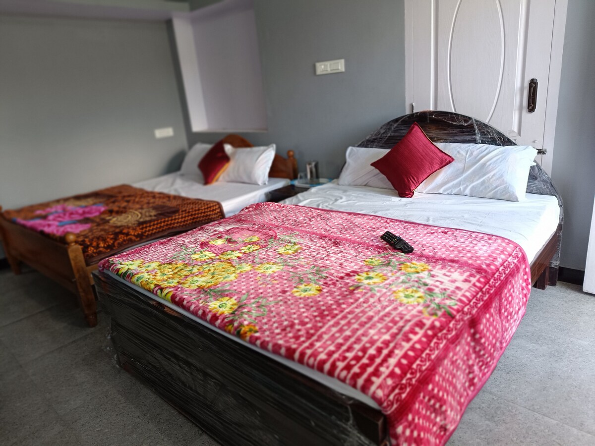 Təmiz yataq yeri, ayrıca hamam otağı və Kotagiri/Uti görməli yerlərinə asan giriş istəyən dörd nəfərlik qruplar üçün münasib qiymətli otaq. Bitişik hamam otağı olan iki möhkəm ikimərtəbəli çarpayı (4 ayrı yer) əldə edirsiniz. Burada trekkinq həvəskarları, dostlar və ya büdcə səyahətçiləri üçün praktiki baza var. İsti su, Wi-Fi və əsas zəruri imkanlar təmin edilir. Sorğu əsasında təzə ev yeməkləri hazırlaya bilərik (ayrıca ödənilir), beləliklə, uzun bir gündən sonra yemək üçün ov etməli deyilsiniz.
