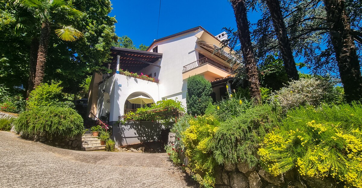Villa dənizdən cəmi 300 m məsafədə dinc bir yerdə yerləşir. Şəhərin yaşıllıqlarla əhatə olunmuş yaşıl zonasında, həmçinin Lovranın ən gözəl bağlarından biri olan, təhlükəsiz hasarlanmış bağ mülkü Villalarda hərəkət edə bilən uşaqlı ailələr, eləcə də rahatlıq və sakitlik axtaran ailələr üçün idealdır. Məkanın mərkəzinə cəmi 5 dəqiqəlik məsafə var. Qonaqlar ayrıca parkinq, barbekü sahəsi, paltaryuyan maşın və pulsuz simsiz də istifadə edə bilər. Xoş gəlmisiniz!