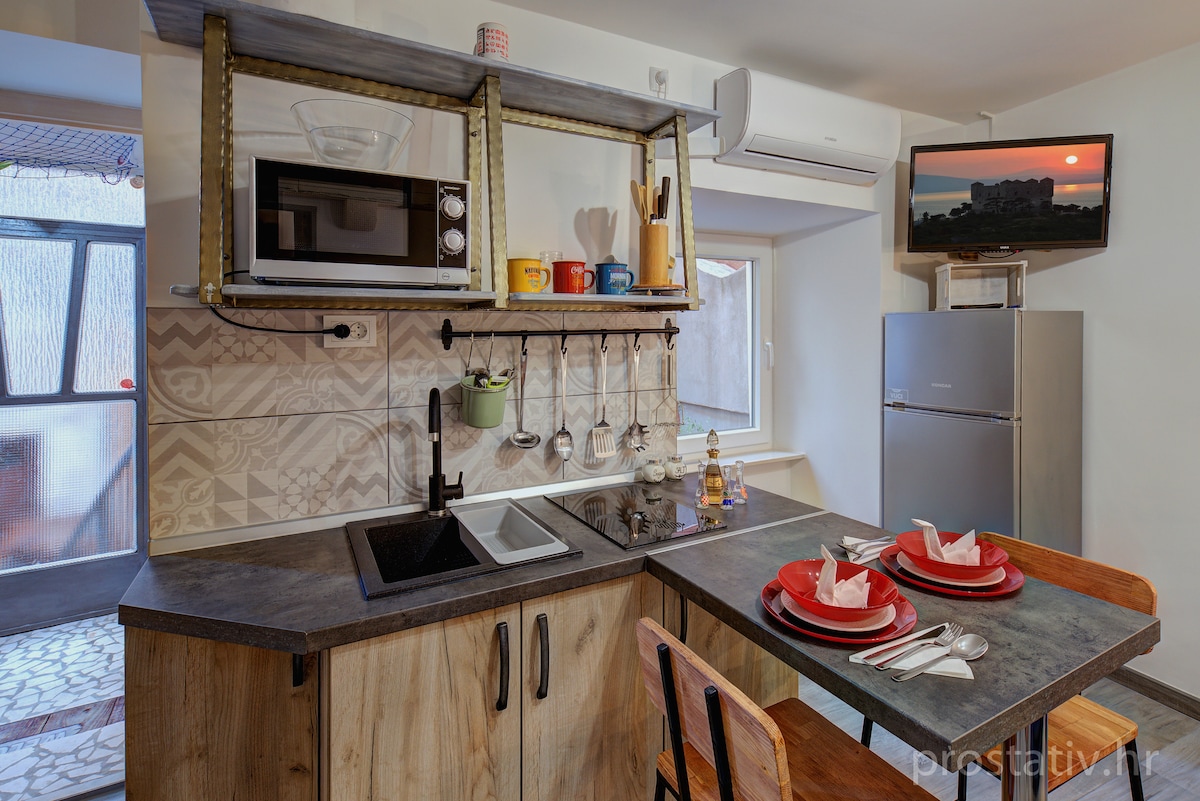 Şəhərin mərkəzində yerləşən bu yaşayış yerinin retro üslublu zərif dizaynından zövq alın. Yaşayış yeri tamamilə yenidir və təmir olunub. Ona sənət əsərləri, bərpa edilmiş qədim əşyalar və əl işi mebellər kimi çox diqqət və gözəl detallarla toxunulub. O, sahilyanı həyatın tam təcrübəsini təmin edir. Ev tarixən məşhur Frankopan ailəsinə məxsus olub və hələ də evin ön hissəsində onların orijinal gerbi var. İki fərqli üslublu və hər birinin ayrıca girişi olan iki yaşayış yeri təklif edirik.