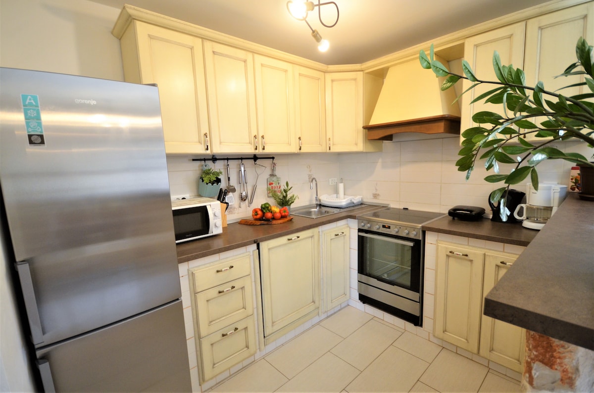 This holiday home is almost 70 years old and is located near Rovinj, with a 5 minutes drive from the sea and beaches. You have at disposal almost 8000m2 of countriside. It is a one floor house of 120 m2 decorated with a mix of antique and modern furniture, suitable for 5 guests. There are the kitchen, lounge area , two bathrooms, king bedroom for three persons and second bedroom with a double bed. Both bedrooms have terrase. You can enjoy arround a new swimming pool. Swimm and bath.