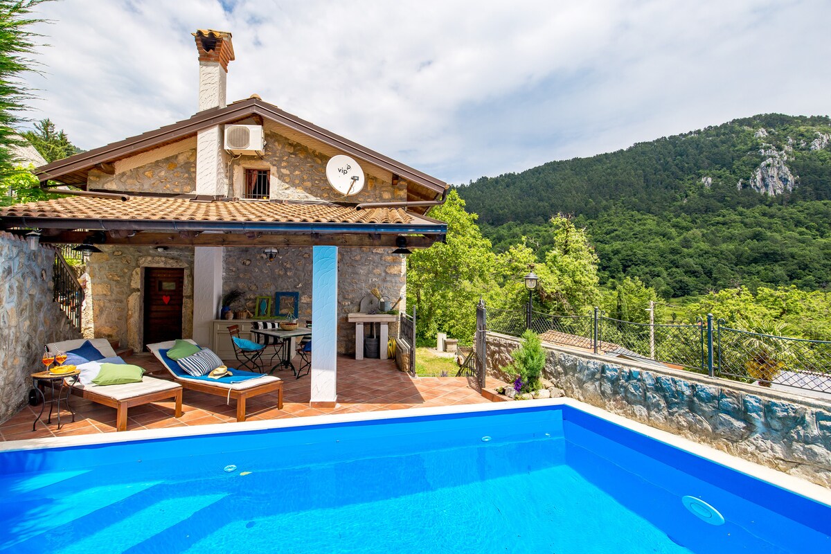 Enjoy a private terrace and pool with breathtaking panoramic sea views over Kvarner Bay. The hous features a traditional BBQ area and space for both kids and adults to relax and unwind. Located near Lovran, it offers complete peace and privacy. Just 4 km from Lovran and the sea, and close to Učka Nature Park. Perfect for families and nature lovers seeking a relaxing escape.