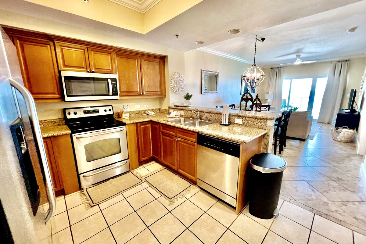 Qapalı və açıq hovuzlar!! Ön Körfəz! - 10 qonaq üçün 1700 kv metrlik çarpayı. Meksika zümrüd yaşıl körfəzinin asılılığı ilə 14-cü mərtəbədə balkon, kral çarpayısı və vanna otağı olan 2 yataq otağı, 2 kraliça şpal divanları və 2 ikimərtəbəli çarpayı var. Mətbəx tam təchiz olunub. Yemək üçün masa/barda oturma. Mənzildə paltaryuyan maşın/paltarqurudan. İdman zalı, cakuzi, uşaqlar üçün sıçrayış yastığı. Kağız məhsulları və yuyucu vasitələr üçün başlanğıc dəstləri təklif edirik. Wi-Fi təmin edilir. 1 həftədən artıq qonaqlamalar üçün əlavə təmizlik haqları tələb oluna bilər.