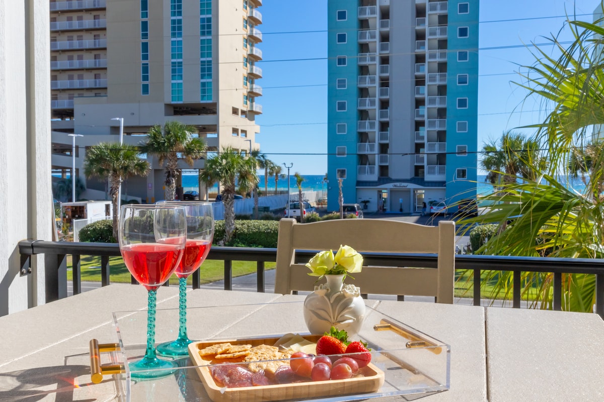 You'll love the DIRECT GULF FRONT view of the beach from the private balcony of this studio! Enjoy a cup of coffee or late night drinks listening to the sound of the waves. Just steps from the sandy white beaches and the clear emerald waters. Newer furnishings and whole unit freshly painted. New dishwasher and counters, ductless AC, queen sized bed and full size pull out sofa, remodeled bathroom with walk-in shower, large flat screen TV, updated full kitchen, washer/dryer in unit and Free WiFi.