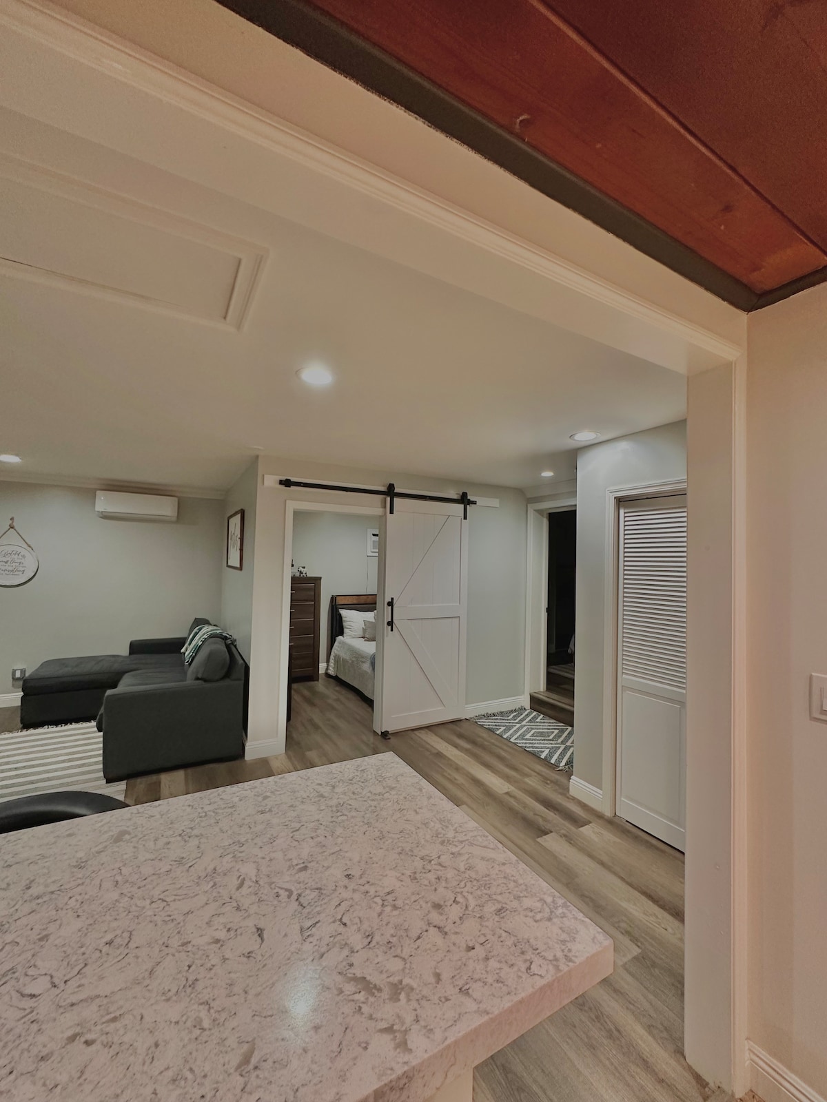 Approximately 650 sq. ft. Studio. Comfortable King bed. Sleeps 2 comfortably, optional for 3rd guest up to your discretion. Ample closet space. Smart TV so you can log into your favorite tv applications. Couch, coffee table and dresser in open concept bedroom/living room. Full kitchen. Fast WiFi. In unit free Washer/Dryer (detergent). Refrigerator with ice maker. Glass Kettle hot pot (instant coffee). Completely sanitized and clean. This is not a shared place. Enjoy