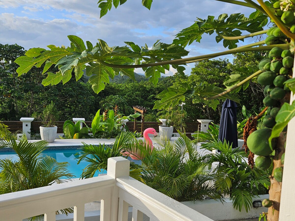 Turn Plantain Cabin 180 dərəcə yamyaşıl dağlar mənzərəsi təklif edir. Sərin breeze, fitil külək, təzə xəfif hava dincəlmək, dincəlmək və enerji yığmaq üçün mükəmməl şərait yaradır. Əsas yoldan kənarda, qabarıq təpəyə qədər qısa bir gəzinti mükəmməl bir qaçışa aparır. Bu vahə ideal şəkildə döyülmüş yoldan kənarda yerləşir və gündəlik yaşayışın səs-küyündən ara verir, lakin Yamaykanın ən yaxşı görməli yerlərinə yaxındır. Hovuz kənarında dincəldiyinizə və buxarı ilə xatirələr yaratdığınıza əmin olun.