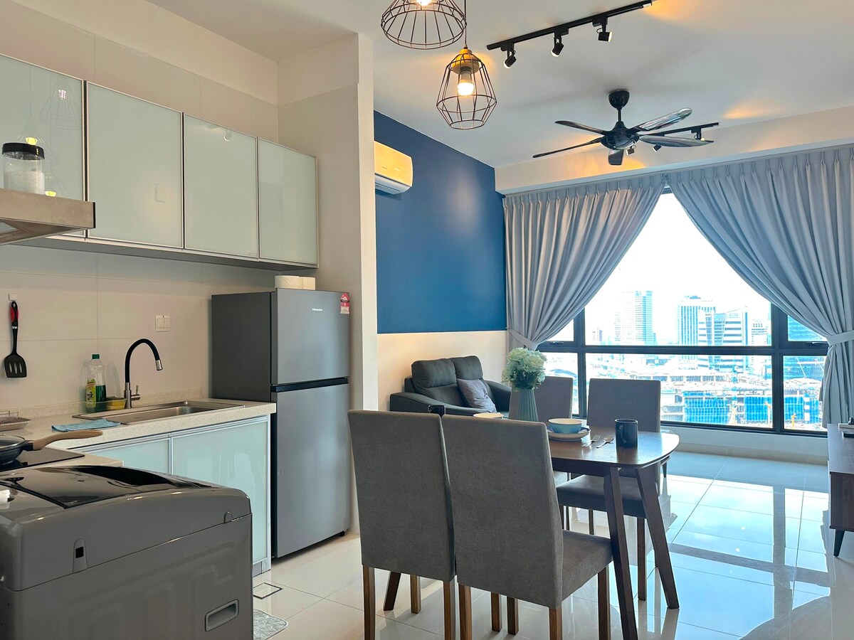 This is a spacious 2Bedroom unit perfectly fit for guests up to 5 pax with total of 1 king size bed 1 queen size bed 1 single bed High floor with high view. 1. Basketball Court 1. Gym Room 2. Function Hall 3. Lounge 4. Library 5. Manicure Shop 6. Mini Theatre 7. BBQ Deck 8. Swimming Pool 9. Sauna 10. Jacuzzi 11. Game room (Pool Table, PS Room, Darts and more) 12. Laundry 13. Mini Market -Sky Garden Guest are not allow to smoke in the room , please smoke at the balcony if needed