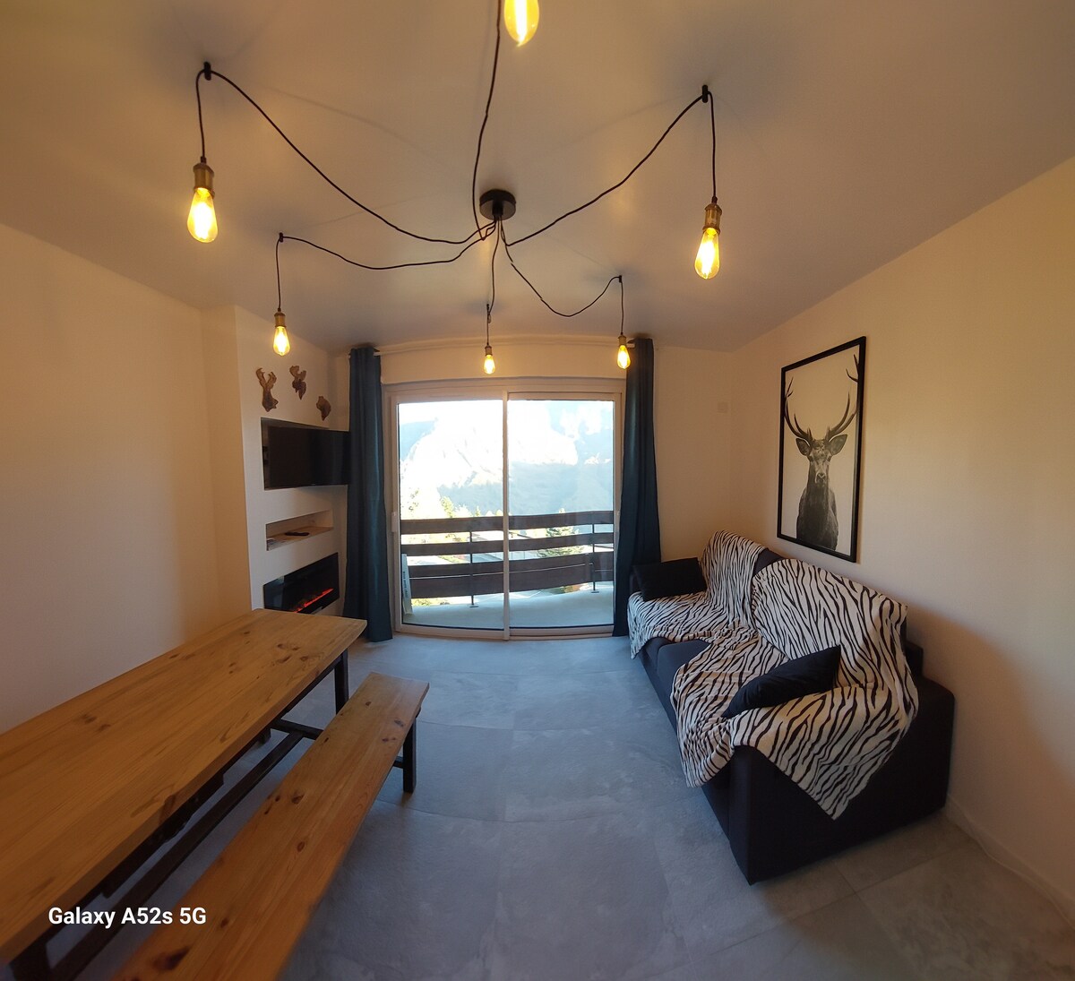 Situé au calme, loin de l'agitation du coeur de station ce grand studio offre une superbe vue dégagée sur la vallée. Il vous faudra moins de 8 min à pied pour accèder au front de neige ou 4 min avec la navette gratuite ! Studio très confortable à 4-5 personnes mais équipé pour 6 personnes . Le + : Un casier à ski chauffé situé au pied des pistes (à coté de la patinoire) afin de vous libérer du matériel et profiter de l’animation du centre de la station sans avoir à repasser par l’appartement !