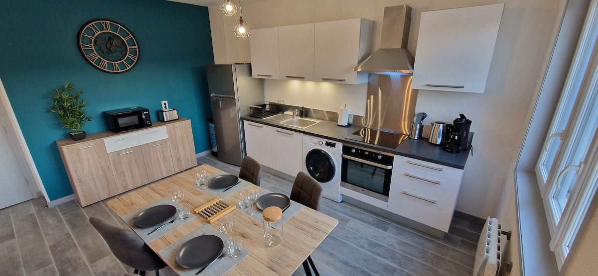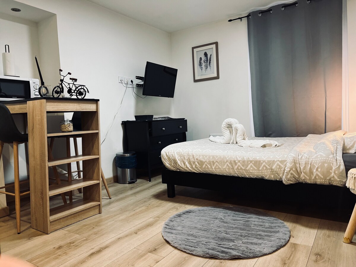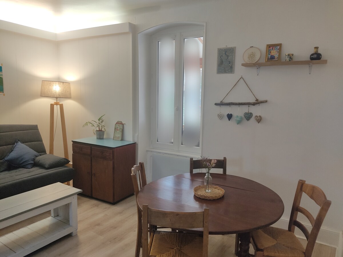 Véritable 2 pièces entièrement rénové. L’appartement lumineux de 38m2, accessible par un escalier d’une quinzaine de marches, se compose d’une cuisine entièrement équipée ouverte sur le salon et le coin repas. Le salon dispose d’un téléviseur. Le logement dispose d’une véritable chambre à part (matelas Queen size 160x200) avec sa petite penderie. Salle de bain avec douche et miroir éclairant + chauffage électrique. Toilettes séparées. Cafetière Nespresso, 2 dosettes offertes.