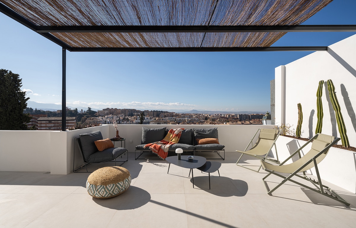 Eleqant Olimpiya binasındakı heyrətamiz penthaus, düz Qranadanın mərkəzində, inanılmaz mənzərələri, gözəl günəşləri və şəhərin hər şeyin piyada məsafəsində olduğu mərkəzi həyatı ilə şəhərin bütün möhtəşəmliyindən zövq ala bilərsiniz. Turist saytları, ən yaxşı restoranlar, alış-veriş məkanları, hətta kəndin ortasında ekskursiyalar. Qranadadan zövq almaq və onun mədəniyyəti ab-havası və bir sözlə, qonaqlamanızı unudulmaz etmək üçün hər şey.