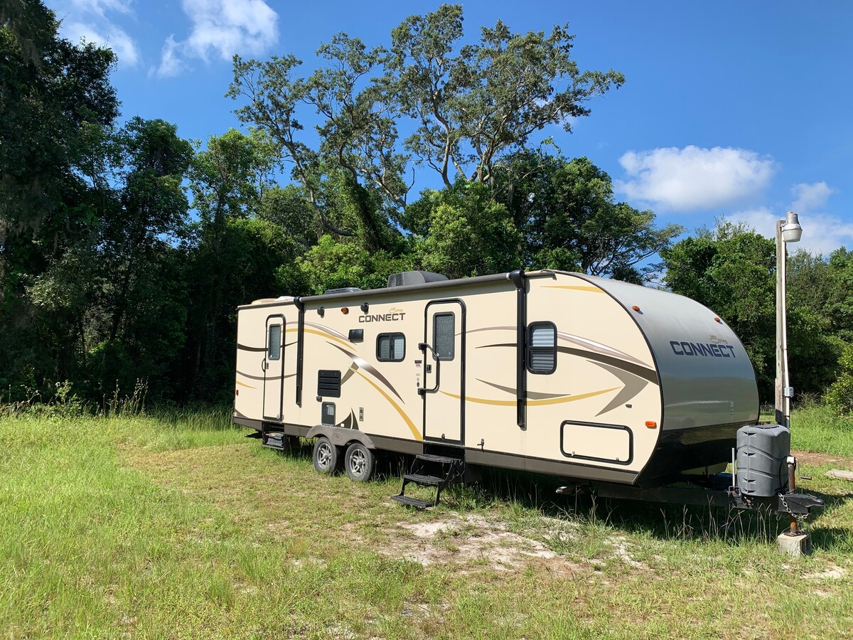 Ocean Oasis RV-yə 🌴 xoş gəlmisiniz! Disney, Universal və ən yaxşı turistik yerlərdən cəmi bir neçə dəqiqəlik məsafədə yerləşən Kissimmee-də rahat 1BR istirahət yeriniz. Rahat çarpayıdan, qapalı və açıq mətbəxdən, ayrıca hamamdan, A/C-dən, filtrlənmiş sudan və pulsuz WiFi-dan zövq alın. Açıq havada dincəlin və ya yaxınlıqdakı yemək, alış-veriş və tematik parkları araşdırın. Rahatlıq, mövqe və macəra axtaran cütlüklər və ya kiçik ailələr üçün mükəmməldir. Tətilinizi bu gün bron edin. 🌟