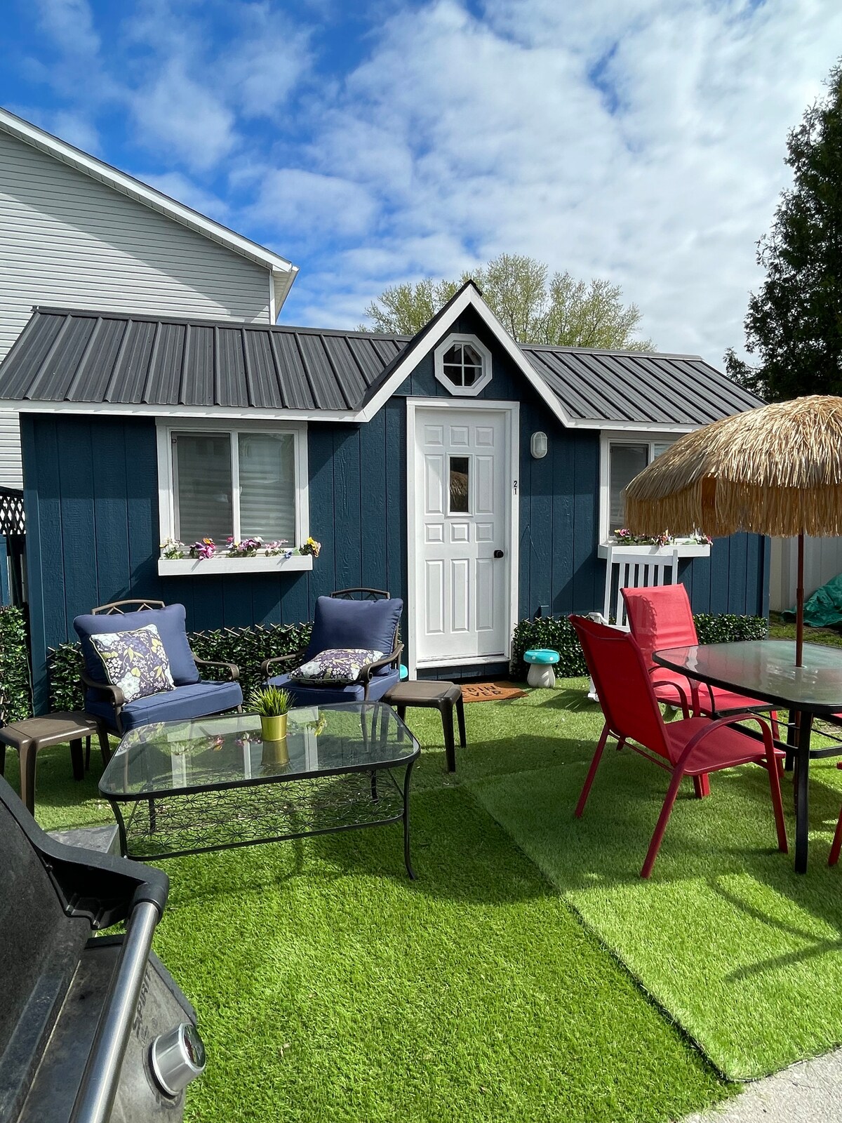The Friday Harbour Resort-da FriYAY Getaways-ə xoş gəlmisiniz! Ailə yönümlü unikal kondominiumumuzda unudulmaz xatirələr yaradın. Gözəl dizayn edilmiş, iki dəst rahat ikimərtəbəli çarpayı, eləcə də 152-179 sm çarpayı və yataq. 5-6 böyük və 2-3 uşaq yerləşə bilər. Hər otaqda Disney, Amazon Prime və Netflix-ə giriş imkanı verən smart TV var. Arxa həyətimizdəki veranda qonaq qəbul etmək üçün mükəmməldir, burada pizza sobası və ızgarası olan barbekü var