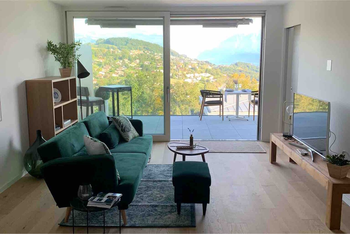 Cenevrə gölü, Çablais massivi və Lavaux üzüm bağlarının heyrətamiz mənzərəsi olan Blonay, Vaud yüksəkliklərində villada xüsusi girişi olan gözəl mənzil. Meşənin ortasında Vevey-les-Pléiades qatarının dayanacağından 50 metr məsafədə yürüyüş və dağ velosipedlərinin çoxluğuna çıxış imkanı verir. Mənzil qabyuyan maşın, paltaryuyan maşın, paltarqurudan maşın, Wi-Fi və televizor daxil olmaqla yüksək səviyyəli mətbəxlə tam təchiz olunub. Tamamilə ayrıca terras. Parkinq, 2 avtomobil.
