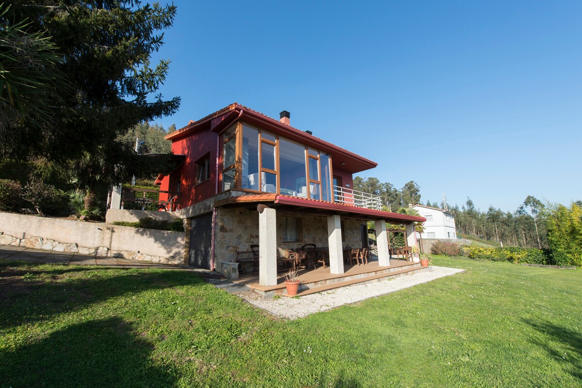 Notre maison est située à 30 m du Chemin anglais vers Saint Jacques de Compostelle (qui est à 45 km), et à 8 km des plages, dans un endroit verdoyant (1.000 m2 de terrain) et très calme (la rue est une impasse) ; elle est idéale pour maximum 5 personnes (couchages 3x2 places) ; cuisine aménagée (plaques à induction, four, réfrigérateur congélateur, lave-vaisselle, micro-ondes, cafetières Nespresso et classique), salle d'eau avec douche, chauffage par radiateur, cheminée Sortie 583 de la Autovia