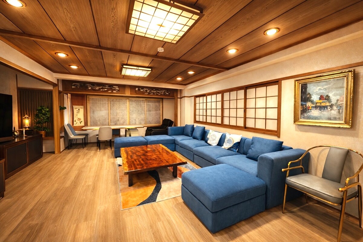 如逸 直达机场&难波 车站步行5分钟 大阪整栋私享豪宅 超大客厅餐厅 100寸大电视 顶楼大露台