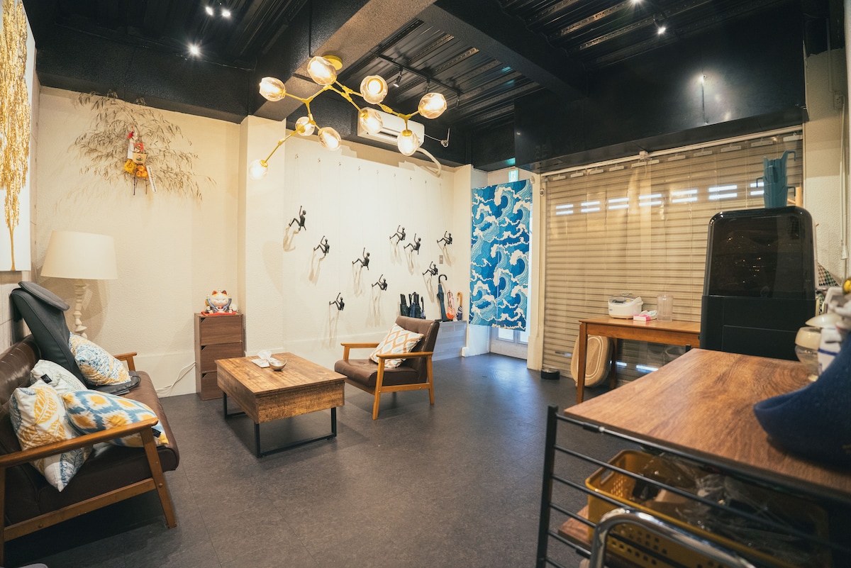 奥利君別館、臨近天王寺、通天閣、2站直達難波梅田、機場可直达民宿、花園町駅步行3分钟、獨棟闹中取静
