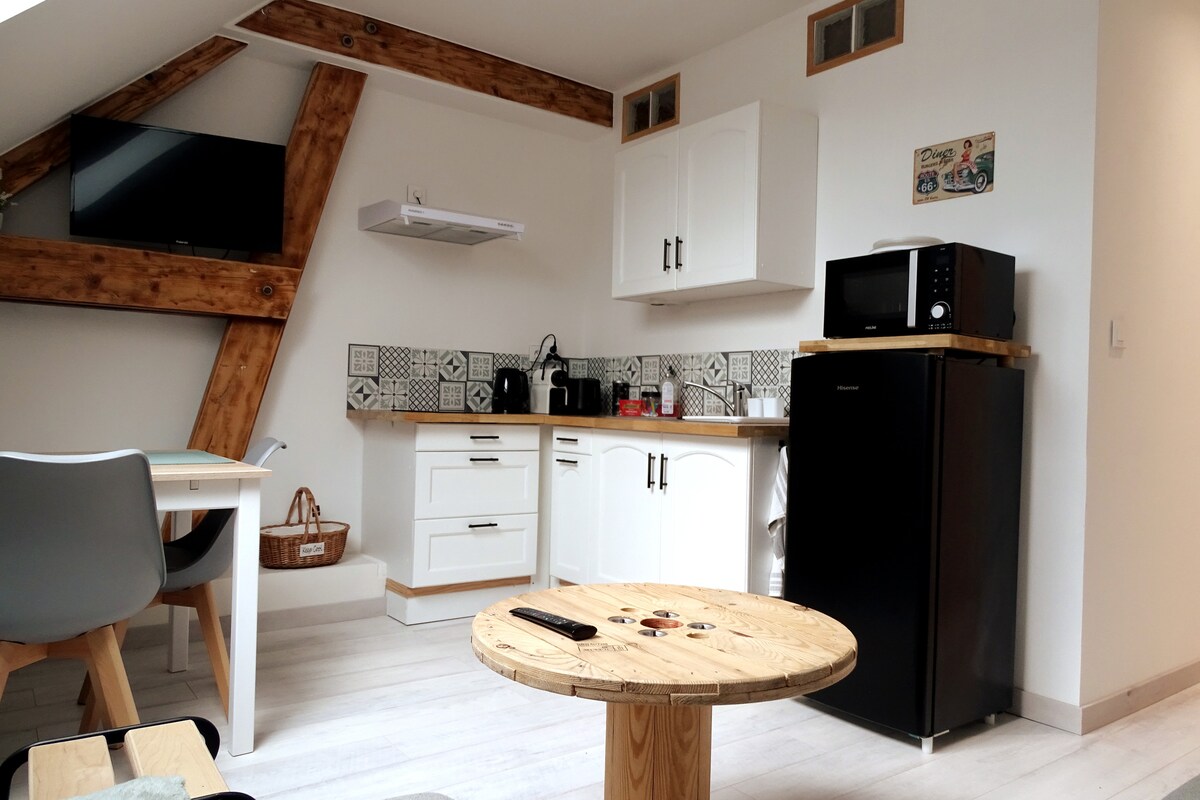 Qonaqlama yerimiz kiçik, sakit bir kənddə yerləşir. Yaşayış yerinə kiçik terras və bağ masası olan kiçik bir özəl həyət, sonra isə 1-ci mərtəbəyə aparan pilləkənlə daxil olmaq olar. Küçədə qonaqlama yerinin qarşısında pulsuz park edə bilərsiniz. siqaret çəkmək qadağandır Pulsuz Wi-Fi çarpayı 140×190 yataq dəsti və dəsmallar təmin edilir duş geli, induksiya aşpazı kombinə edilmiş mikrodalğalı soba nespresso qəhvə maşını toster çaydan raclette maşını