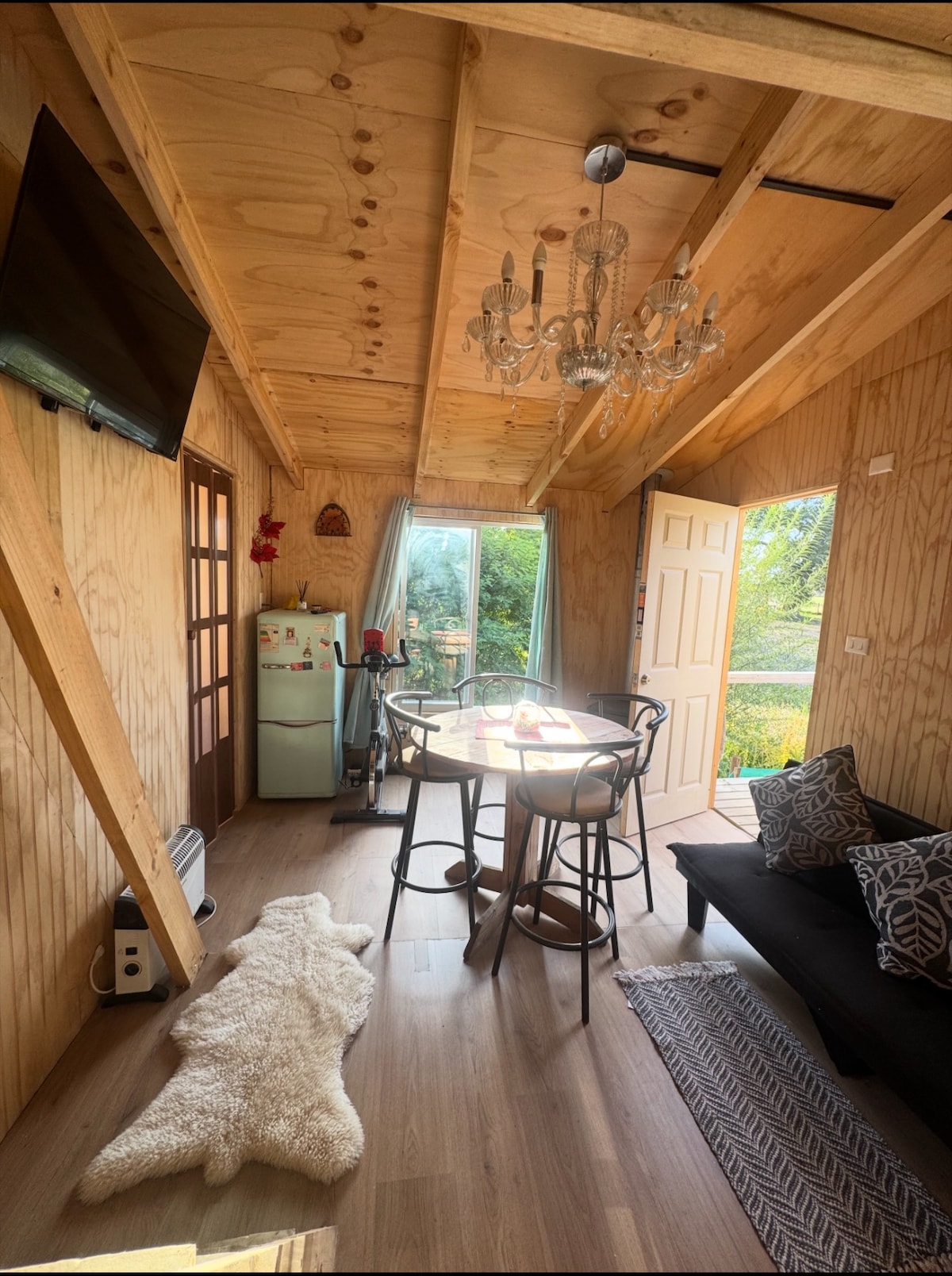 Cómoda cabaña tipo loft rústica, equipada, a pasos de clínica alemana y hospital base, a pocas cuadras cuentas con el supermercado santa Isabel y easy, líder express. Te encontrarás con espacio sencillo, privado, seguro y confortable, sensación de estar en el medio de un campo, pero en es la misma ciudad. Cuenta con una cómoda cama king, una cocina equipada con todo lo necesario para tu estadía y con señal wiffi. Ideal si necesitas vivir en un tiempo en Osorno por estudios o trabajo temporada