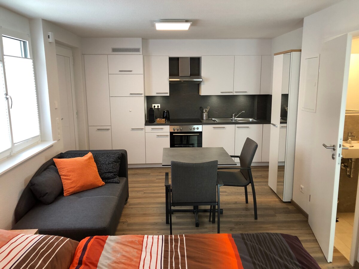 50 qm tier- und rauchfreie Wohnung in ruhiger Lage, zwei Zimmer, freundlich und hell eingerichtet. Stauraum ist vorhanden. Die Küche ist komplett ausgestattet. Es gibt eine kleine Terrasse mit Sitzgelegenheit. Gute Lage, da A8, B27, Flughafen, Messe, Barracks, Stuttgart City und Schwäbische Alb in der Nähe, gut und schnell erreichbar. Im Ort gibt es Supermärkte, Post, Restaurants, Bars, Banken, Ärzte etc.. Entfernung zum Flughafen mit dem Auto etwa 10 Minuten. Bus ca. 10 Min. zu Fuß.
