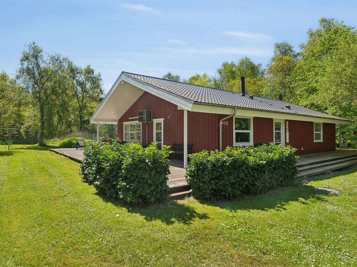 Meşədə gözəl, yeni, ailə yönümlü, bütün il boyu açıq olan bağ evi - 109 m2 + 45 m2 əlavə, açıq jakuzi, köpüklü hamam və sauna. Evin ətrafında terraslar, çimərlik voleybolu meydançası və tonqal yeri var. Dənizə məsafə azdır, Øster Hurupda gözəl çimərliklərə 10 dəqiqə, alış-veriş üçün isə 5 dəqiqəlik məsafə var. Evdə 8-10 nəfər yerləşə bilər. Evdə 3000 m2-lik təbiət ərazisini əhatə edən fiber genişzolaqlı və Wi-Fi mövcuddur. İyul və avqust aylarında şənbə günü qeydiyyat var. Bəzən həşəratlar çox ola bilər.
