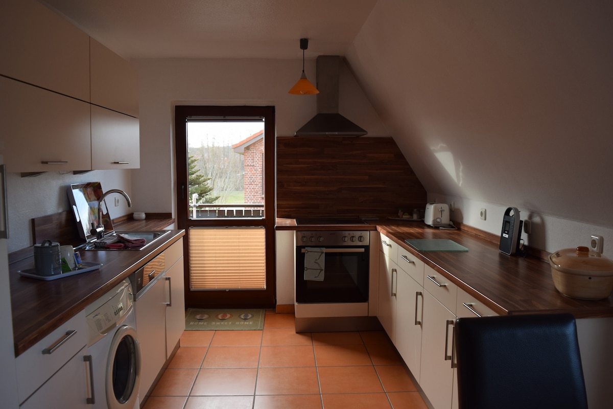 Unsere ca. 52 qm große Ferienwohnung lädt zum entspannen mitten in Schleswig Holstein ein. Die Wohnung befindet sich im Erdgeschoss unseres Wohnhauses in Büdelsdorf, ist zentral, aber dennoch ruhig gelegen. Sie verfügt über einen eigenen Eingang, Flur, ein Schlafzimmer mit einem Doppelbett. Der Wohnbereich ist mit Sitzgelegenheiten wie Esstisch mit Stühlen, Sitzbank, sowie einem Sofa ausgestattet. Die Küche ist vollwertig eingerichtet. Das Bad verfügt über WC/Dusche .
