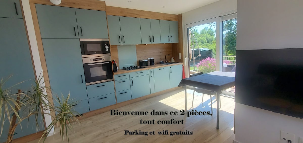 Strasburqun cənubunda gözəl sakit yaşayış yerində yerləşən, bağa/meşəyə çıxışı olan evdə müstəqil girişi olan təmirli və kondisionerli mənzil. Təxminən 60 m2 mətbəxi olan qonaq otağı, iki nəfərlik çarpayısı olan 1 yataq otağı, 1 bir nəfərlik çarpayısı olan 1 yataq otağı (ikinci bir nəfərlik çarpayı əlavə etmək imkanı) və hamam/tualet arasında bölünüb. Ayrıca parkinq yeri. Wi-Fi internetə giriş. Gəliş zamanı döşəkağı-dəsmallar və dəsmallar mövcuddur. İmkanlara, avtobusa, avtomobil yollarına yaxınlıq.