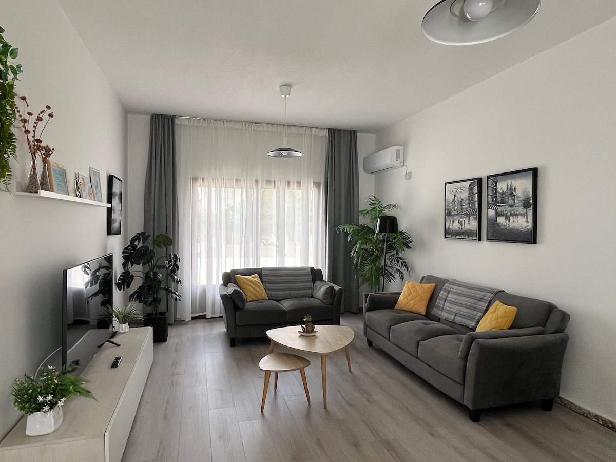 Mərkəzdə yerləşən bu sevimli yeni iki yataq otağında müasir düz yerdə dəbli təcrübədən zövq alın. Əsas prospektə 5 dəqiqəlik məsafədə restoran/mağazalar və ya köhnə şəhərə 10 dəqiqəlik məsafədə. Bu, balkonu olan yeni tikilmiş müasir üst mərtəbə mənzilidir. Şəhərdə oturub ən yaxşı mənzərələrdən zövq ala biləcəyiniz 2 stul və masanız var. Bütün məkan tam şəraitlidir. Ayrıca parkinq yeri olan mənzillərə asanlıqla park edə bilərsiniz.