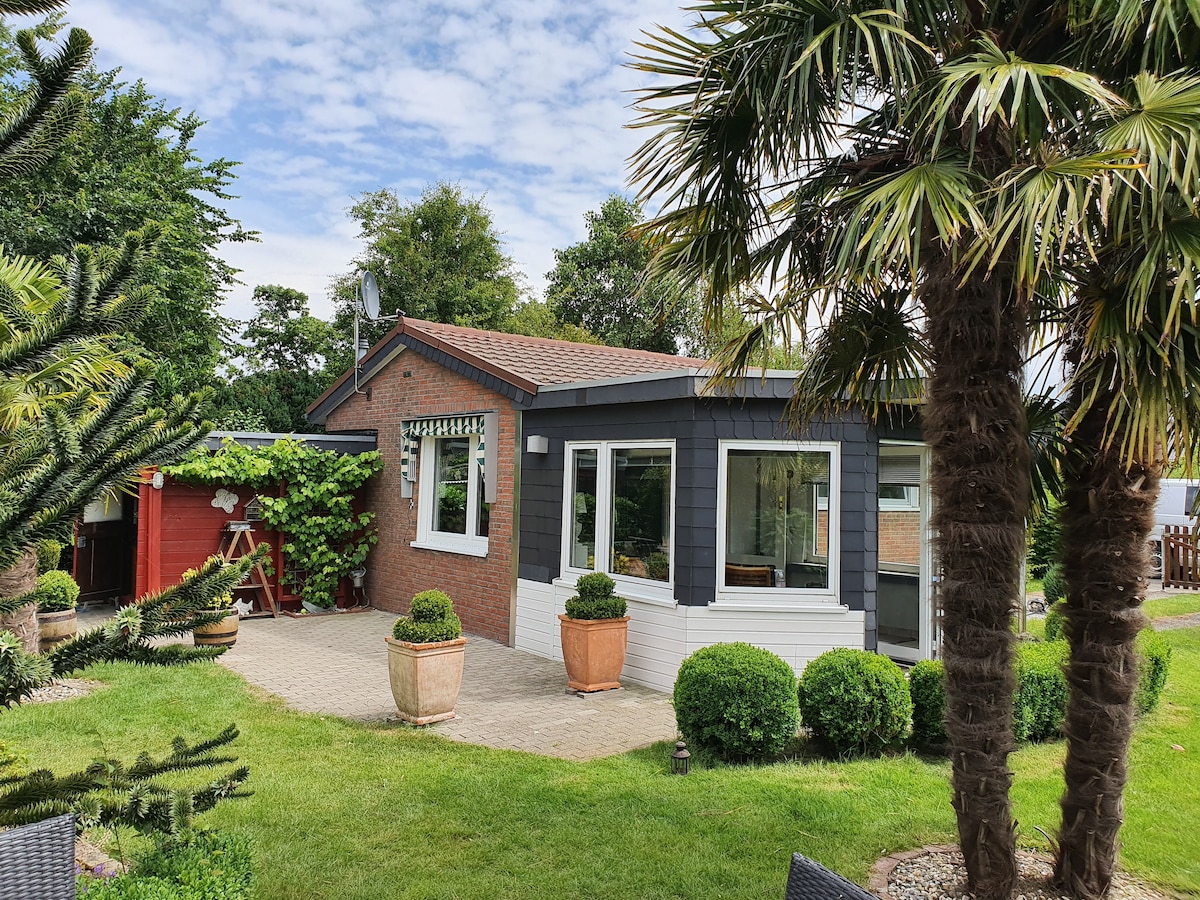 Sfeervol ingericht chalet (4 p) met mooie ruime tuin in Friesland. Woonkamer met zithoek en eethoek. Goed ingerichte keuken. Twee slaapkamers met voldoende bergruimte. Badkamer met douche en toilet. Rustig en verzorgd park met wasserette. Centrale ligging t.o.v. natuur, cultuur, mooie dorpen, steden, meren, strand, Waddenzee, Waddeneilanden. Genieten van het prachtige Friesland, per auto/fiets/te voet/het water.