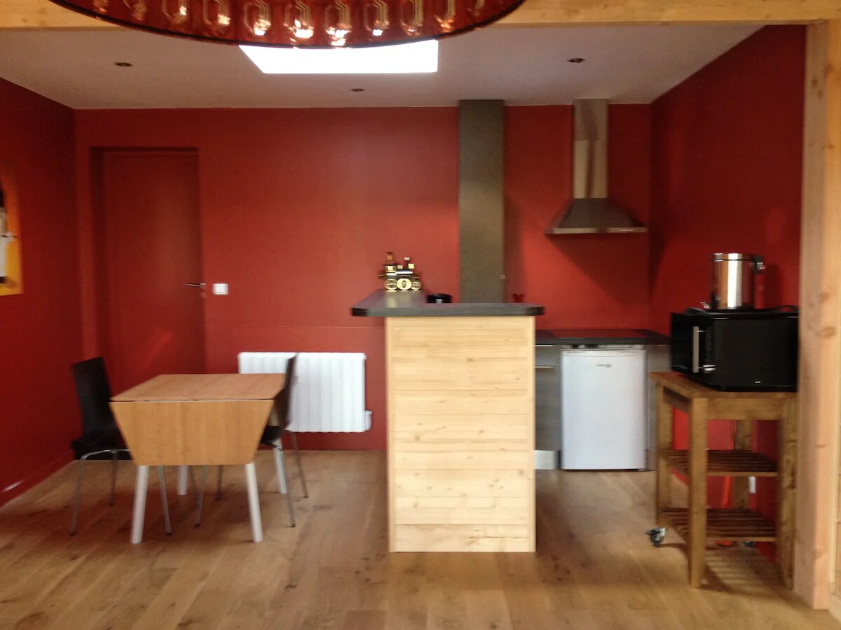 Sizi 2018-ci ildə təmir edilmiş köhnə 22 m2-lik şərab zavodumuzda böyük məmnuniyyətlə qarşılayacağıq. Gözəl örtülü terras ilə. tam təchiz olunmuş mətbəx sahəniz, qonaq otağında folda yatağınız, duş otağınız olacaq. Biz Champtoceaux bələdiyyəmizin kəndinə 2400m2 yaxın mənzərəli bir məkandayıq (gəzinti məsafəsində olan bütün mağazalar, şəhərin mərkəzində iyul və avqust aylarında açıq üzgüçülük hovuzu).