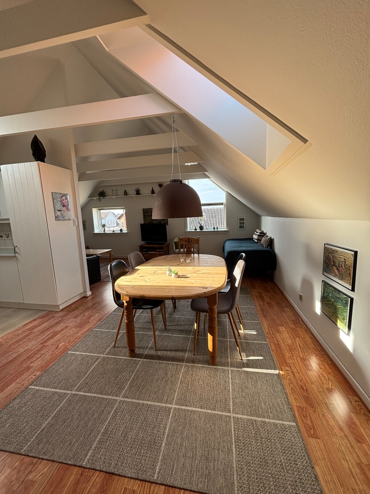 Boligen er en Gl.hestestald der er lavet rigtig hyggeligt med køkken alrum og badeværelse og oven på er stor stue med to senge og en sovesofa. Der er parkering lige ved egen indgang, hvor der er en tarasse der vender mod øst.Vi har en lokal købmand500m.Der er mulighed at komme med tog til byen.