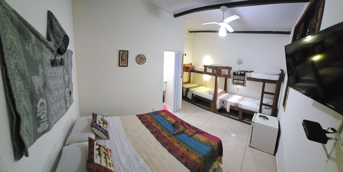 Suítes privativas para até 3 pessoas, inclui frigobar.