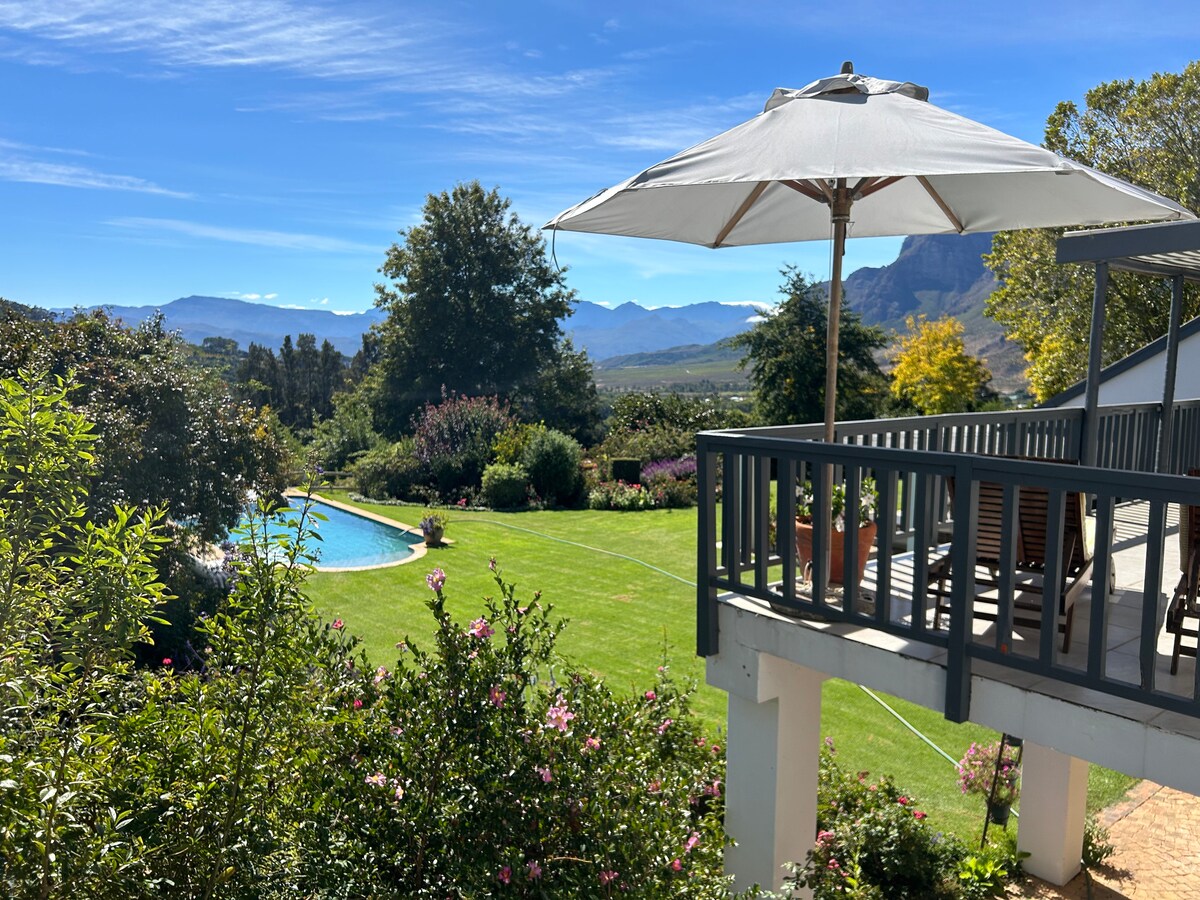 Retreat to a tranquil sanctuary, with a shallow water feature for hot afternoons, designed for relaxed lounging & unhurried refreshing. This garden house in Franschhoek is made for slow evenings, homecooked meals and quiet discovery, with three en-suite bedrooms and generous open living spaces. Our home is solar-powered and just a short stroll from the town centre away. Enjoy the Food & Wine Capital of South Africa, surrounded by award-winning wineries, exceptional restaurants and rich history.