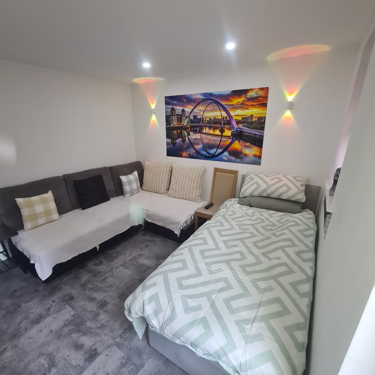 Qalmaq üçün bu rahat yerdə dincəlin. Öz hamam otağınız, künc divanınız və televizorunuz var. Şəhər mərkəzinə aparan avtobus dayanacaqlarına 3 dəqiqəlik məsafədədir. Metroya cəmi 10-12 dəqiqəlik piyada məsafədədir, həm Shields Rd, həm də Kinning Park. Nandos, Alea Kazino, Hollywood Bowl və daha çoxu olan Quay 3 dəqiqəlik piyada məsafədədir. Kənd otelindən 10 dəqiqəlik piyada məsafədə yerli idman zalları var. Bağdakı otaq yalnız 2023-cü ilin iyul ayında tikilib. OVO Hidro, Elm Mərkəzi və SECC 10-15 dəqiqəlik piyada məsafədədir. Tesco və Greggs də yaxınlıqdadır.