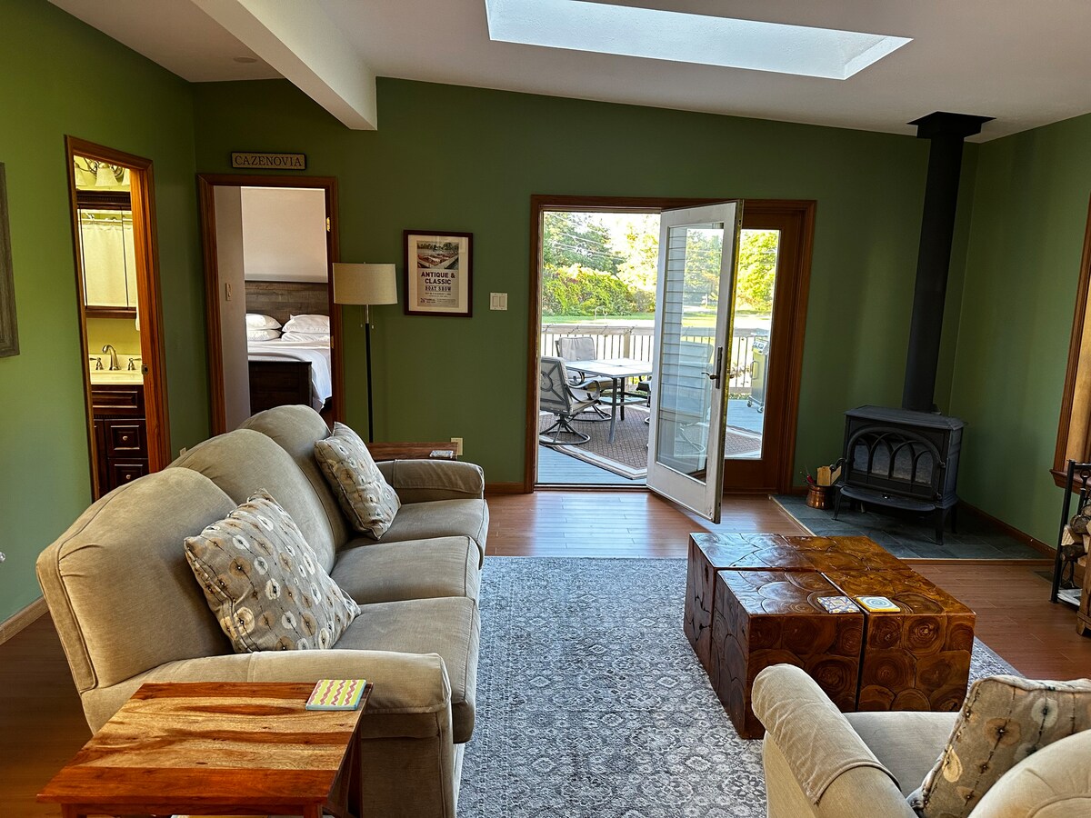 Ouasko gölündəki Barmaq Göllərində heyrətamiz gün batımı və suya nadir səviyyədə çıxışı olan xüsusi gölkənarı ev - heç bir addım! Auburn və Skaneateles şəhərlərindən 15 dəqiqəlik məsafədə. Bütün yataq otaqlarında böyük düz həyət, 2 kayak, yeni barbekü qril, 75" ağıllı televizor, A/C və ağıllı televizorlar. Göyərtəsi, göl mənzərəsi və geniş lüks hamamı olan əsas süita. Sürətli Verizon Fios Wi-Fi. Şərab zavodlarına, pivə zavodlarına, ictimai qolf meydançalarına və füsunkar kiçik şəhərlərə dəqiqələr qalır. Ailələr, cütlüklər və ya rahat tətil üçün mükəmməldir.