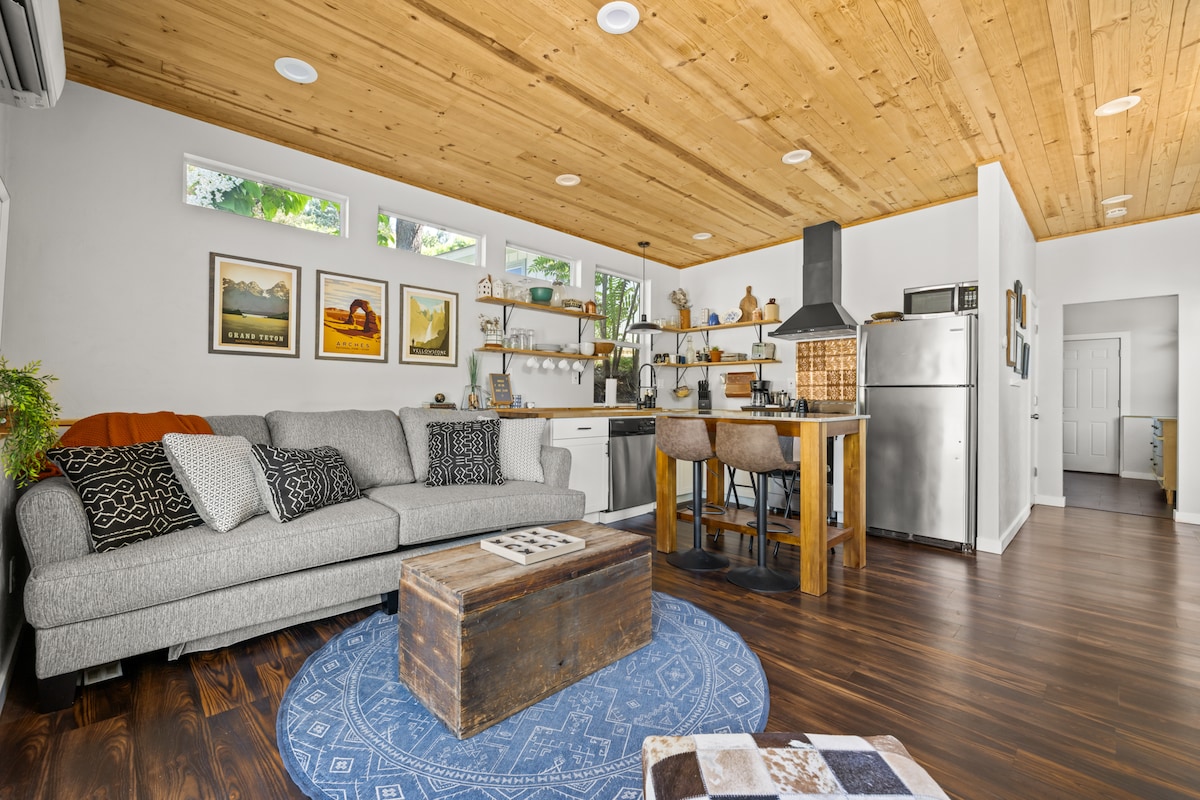 Sakit və rahat evcik yalnız Qrinbeltdən və Boise şəhərindən bir neçə dəqiqəlik məsafədə yerləşir. Şəxsi arxa həyətinizdəki göyərtədə səhər qəhvəsini için. Daha sərin axşamlarda yanğın yaradın. Şəhərin mərkəzinə asan girişi olan Greenbelt-də gəzin və ya velosiped sürün. Yaxınlıqdakı Garden City-də çay kənarındakı restoran və barlara gedin. Bu unudulmaz tətildə təbiətlə yenidən əlaqə qurun. * Daha böyük bir şey axtarırsınızsa, digər elanımızı sınayın: airbnb.com/h/boho-farmhouse