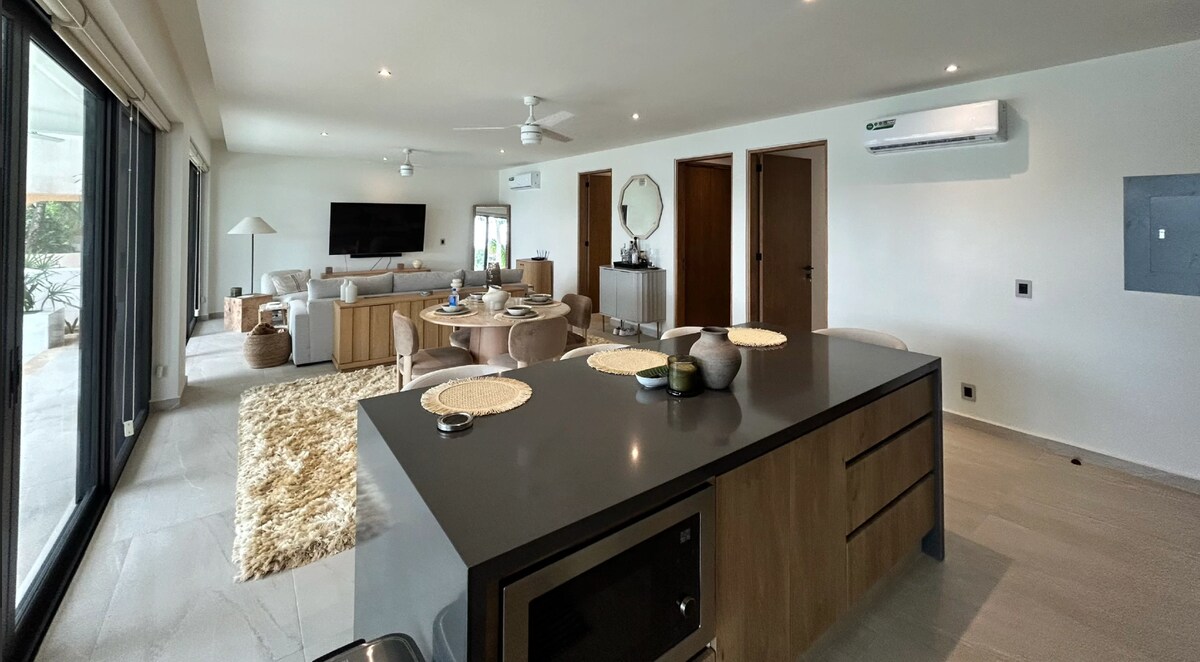 Cənnətin bir parçasından zövq alın: 120m2 məxfilik və gözəl ayrıca hovuzu olan istirahət (yalnız sizin üçün). Playacar Fase 1-in lüks iqamətgahının daxilində, Karib çimərliyindən 1 dəqiqəlik məsafədə müasir, geniş və yararlı tam mənzil. *Kral ölçülü çarpayı *Wi-fi (işləmək üçün yaxşı sürət) *Tam Mətbəx * Məşhur 5-ci prospektdən piyada 10 dəq məsafədə * Çimərlikdən 1 dəq məsafədə *Mühafizəçi 24/24