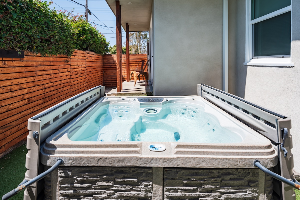 Right in the heart of Pacific Beach, a beautiful newly remodeled bright and airy home with 2 bedroom/2 bathroom, private yard and hot tub under twinkly lights. Walk to best that PB has to offer: restaurants, bars, yoga, coffee. Beach/bay less than a mile away. 1-car garage parking. After a day at the beach, come home to enjoy the fire pit, jacuzzi, play a game of corn hole, or enjoy a movie indoors on the cozy large couch. Always fully stocked coffee bar with premium coffees.