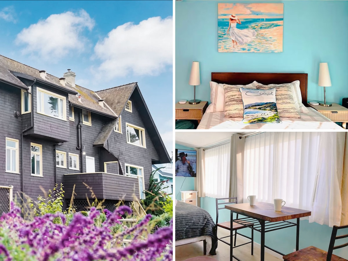İtlərə uyğun! Meşə v/döşəməsindən tavan pəncərələrinə baxan 2 rm studiyaya ayrıca giriş. Kraliça yaddaşlı çarpayı, vanna otağı w/duş və imkanlar, balaca v/ qablar, mikrodalğalı soba/konveksiya sobası, ocaq, toster, qəhvə.Far okeanı mənzərəsi, gün batımı, göyərtə, qaz manqalı. odun buxarısı, pulsuz odun, pulsuz internet, televizor, Dvd, LPS, Bütün imkanlar. Çimərlik dəsmalları/ayaqaltılar, ottoman/kotec, pulsuz parkinq. qeyd: tavanlar alçaqdır və bəzi addımlar var. Bron edərkən itlər haqqında bizə məlumat verin.