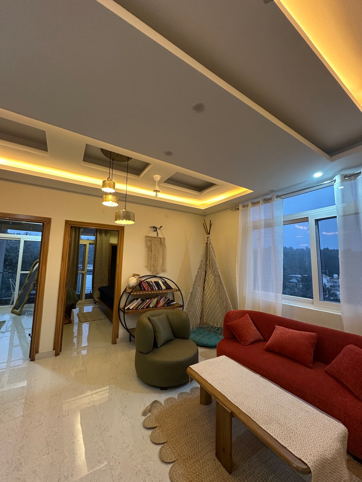 This Dehradun Mussorie home offers quiet premium and everyday comfort. Suggested stay in Dehradun-Mussorie A 2BHK concept with Dehradun-Mussorie valley view, kept it for Workation ready with mountain and Doon-valley view. Premium & thoughtfully curated furnishing layout create a space that feels both refined and welcoming. We dressed up this home in trendy way, ideal for guests who value privacy, comfort, simplicity and perfection. Designed in warm beige tones with a calm, minimal aesthetic.